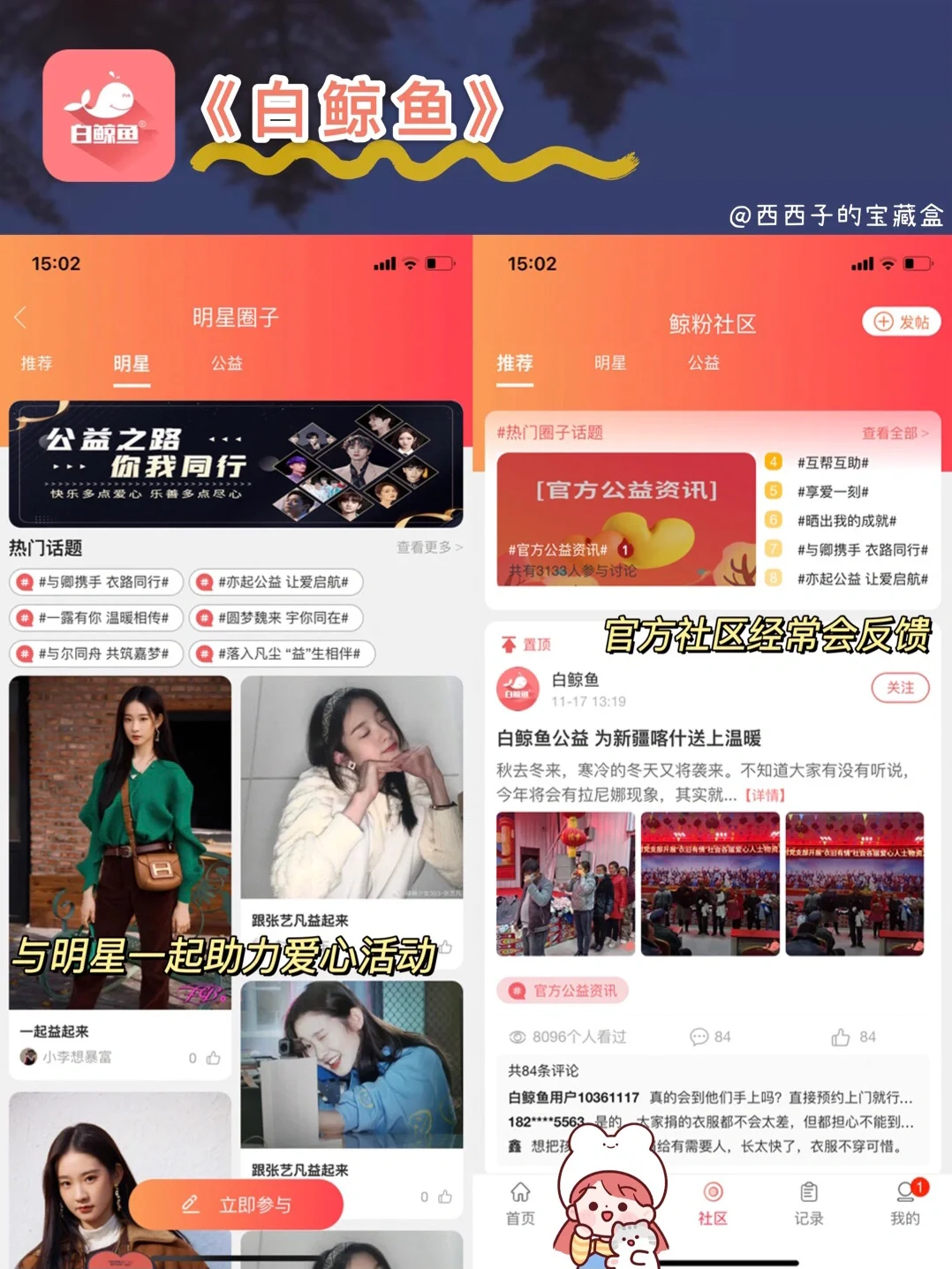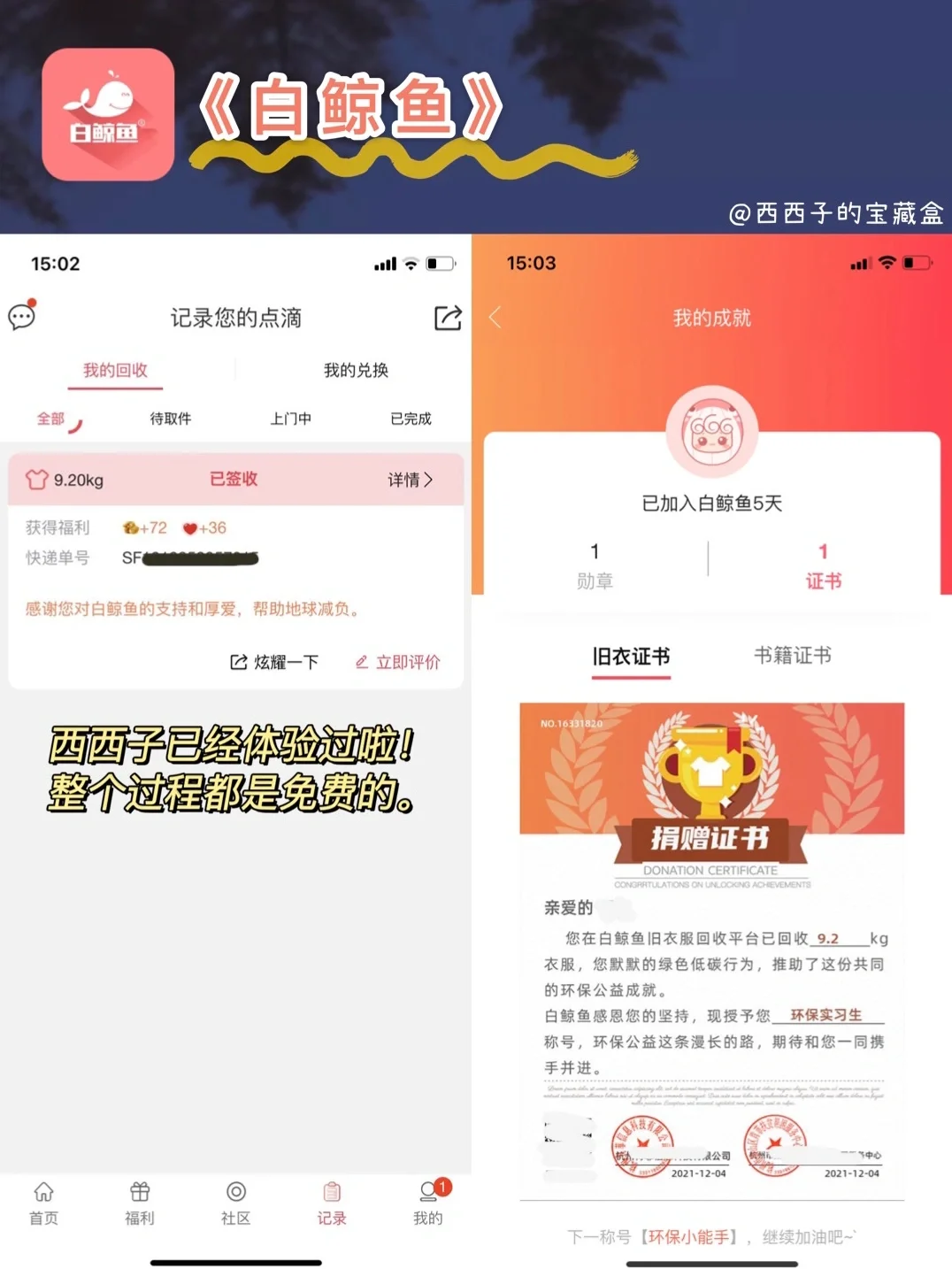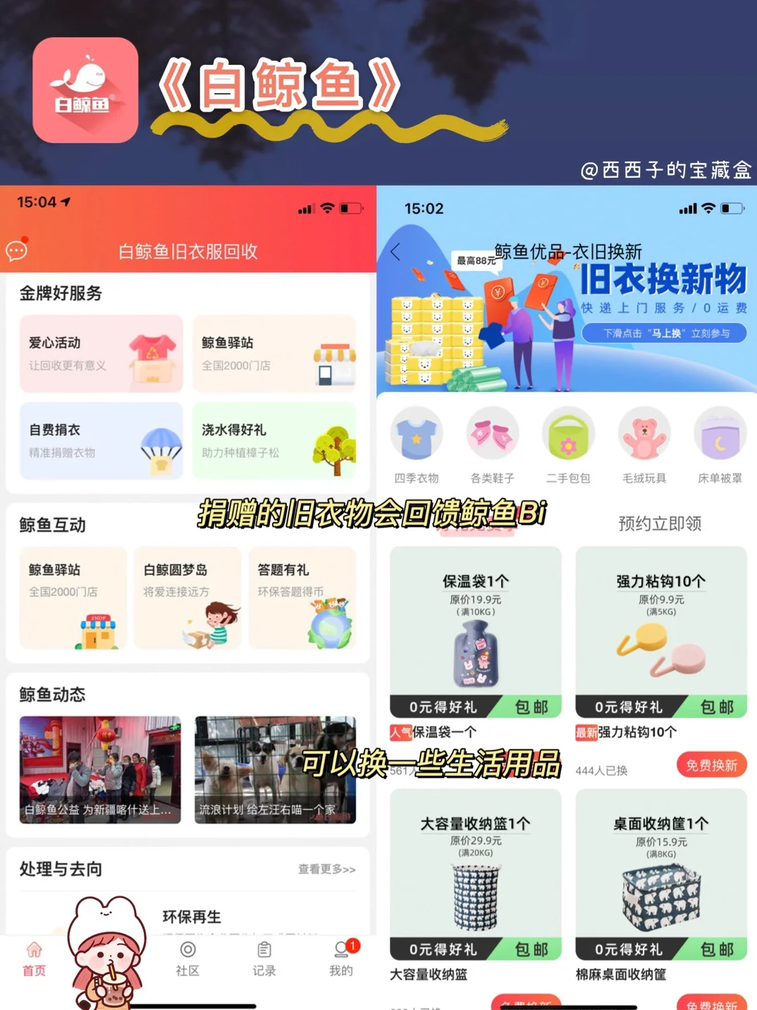 平台会根据回收的重量回馈你🐳鲸鱼Bi,这个东西可以用去换新的生活物品,而我们的旧衣物会经过白鲸鱼精细的分拣、消毒,❤️把符合捐赠标准和需求的衣物捐赠给贫困地区,🌞为他们送去温暖的问候;