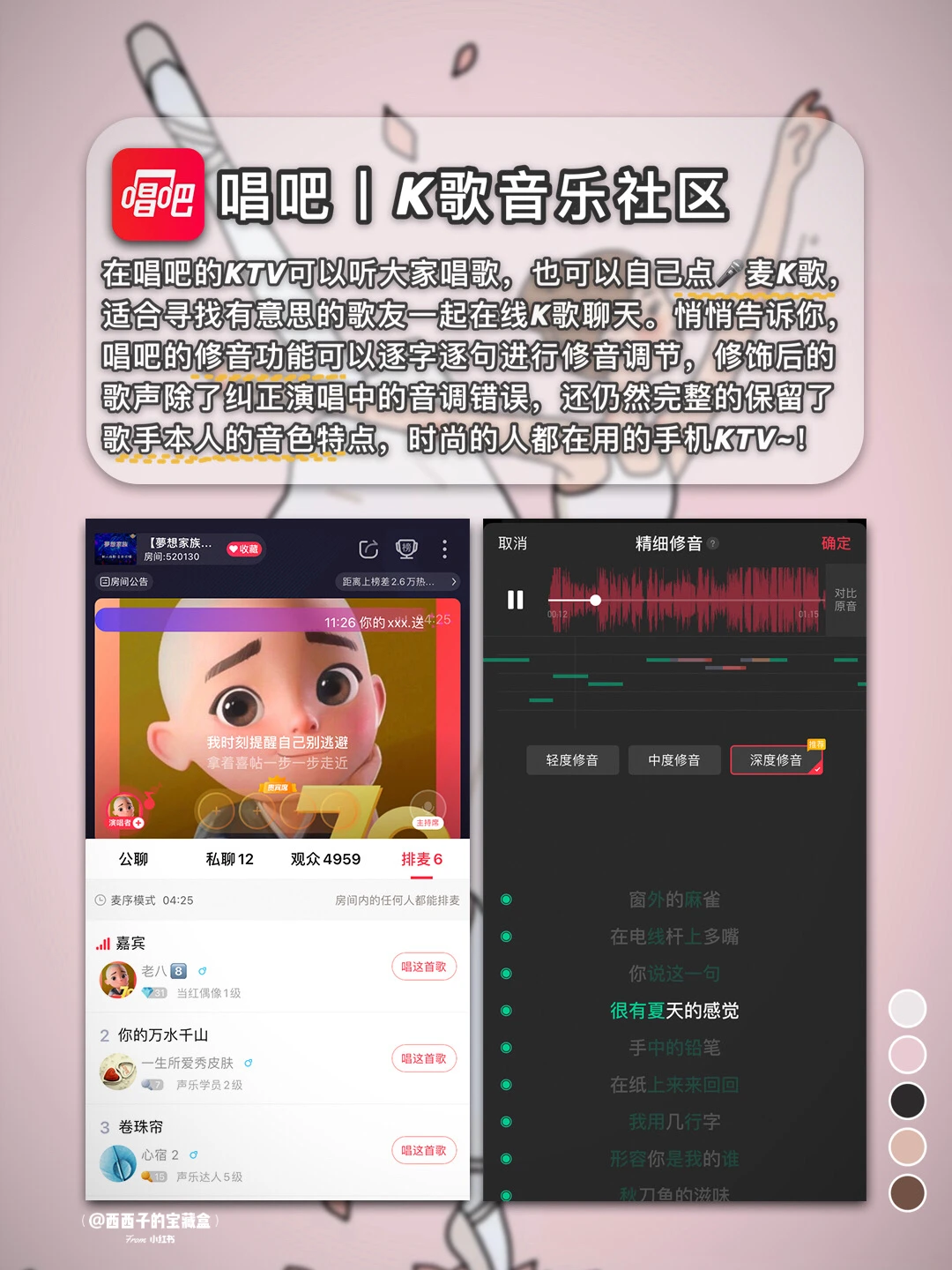 8款宝藏APP,🎤学唱歌、🎨学作画、💃学跳舞... 🎀平凡女孩也能拥有舞台! · 🌸唱吧丨K歌音乐社区 · 🌼Tayasui Sketches丨绘图工具 · 🌸小睡眠丨白噪音 · 🌼跳跳舞蹈丨舞者学舞 · 🌸堆糖丨壁纸社区 · 🌼有谱么丨乐器随身谱 · 🌸Prêt-à-Template丨服装设计 · 🌼练字大师丨书法练习 · 来都来啦~留个❤️❤️再走吧! 西西子总会发现宝藏App:有趣,有料,有价值,分享那些你不知道的实用APP。