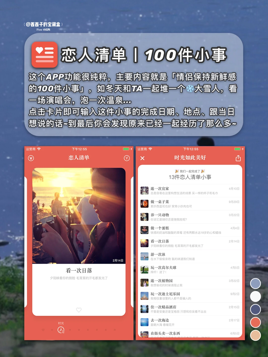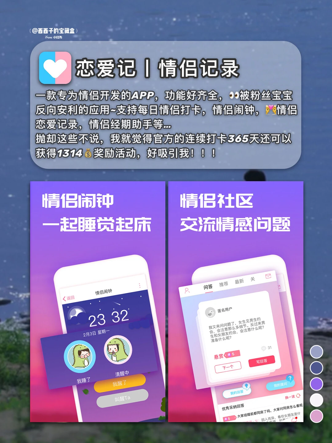 ❤️甜甜的恋爱怎么能少了这些情侣辅助APP‼️ [斜眼R]艾特你的那个Ta一起来看看吧~ · 🌸我的倒计时丨恋爱计时 · 🌼U哩丨同屏陪伴 · 🌸恋人清单|100件小事 · 🌼小睡眠丨白噪音 · 🌸堆糖丨情侣壁纸 · 🌼恋爱记丨情侣记录 · 🌸旅行串串丨情侣游戏 · 🌼一伴丨脱单黑科技 · 西西子总会发现宝藏App:有趣,有料,有价值,分享那些你不知道的实用APP。 情侣APP丨情侣必做100件小事丨纪恋日提醒丨恋爱计时丨情侣壁纸丨情侣游戏