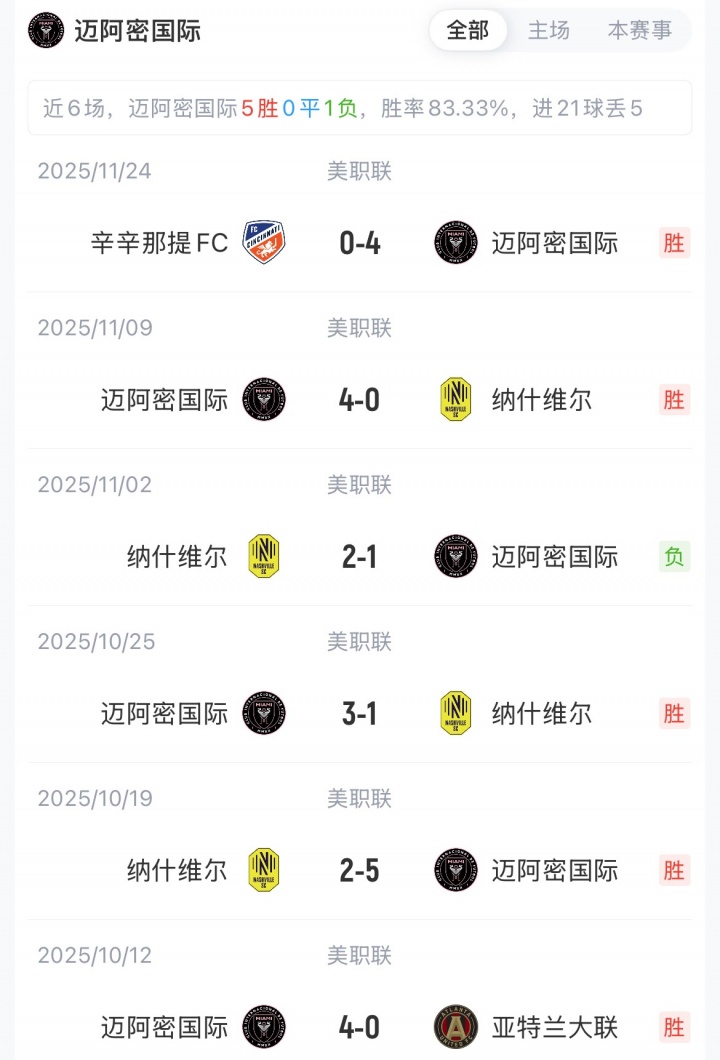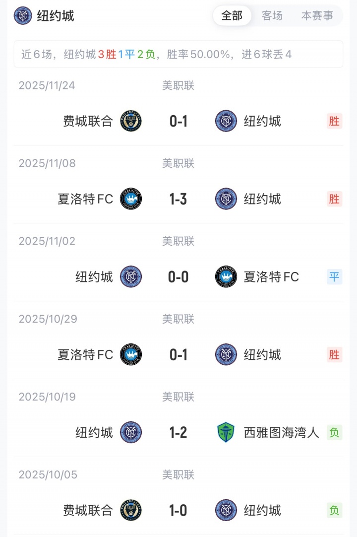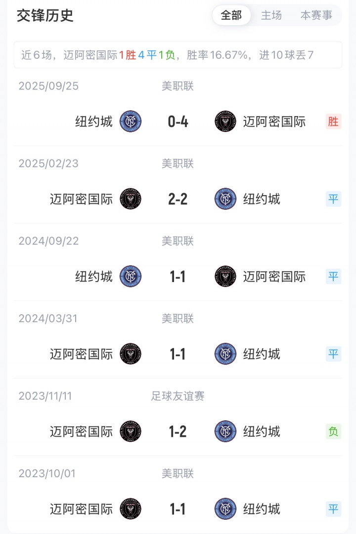 梅西加盟迈阿密国际后,共与纽约城交手3次,战绩1胜2平。