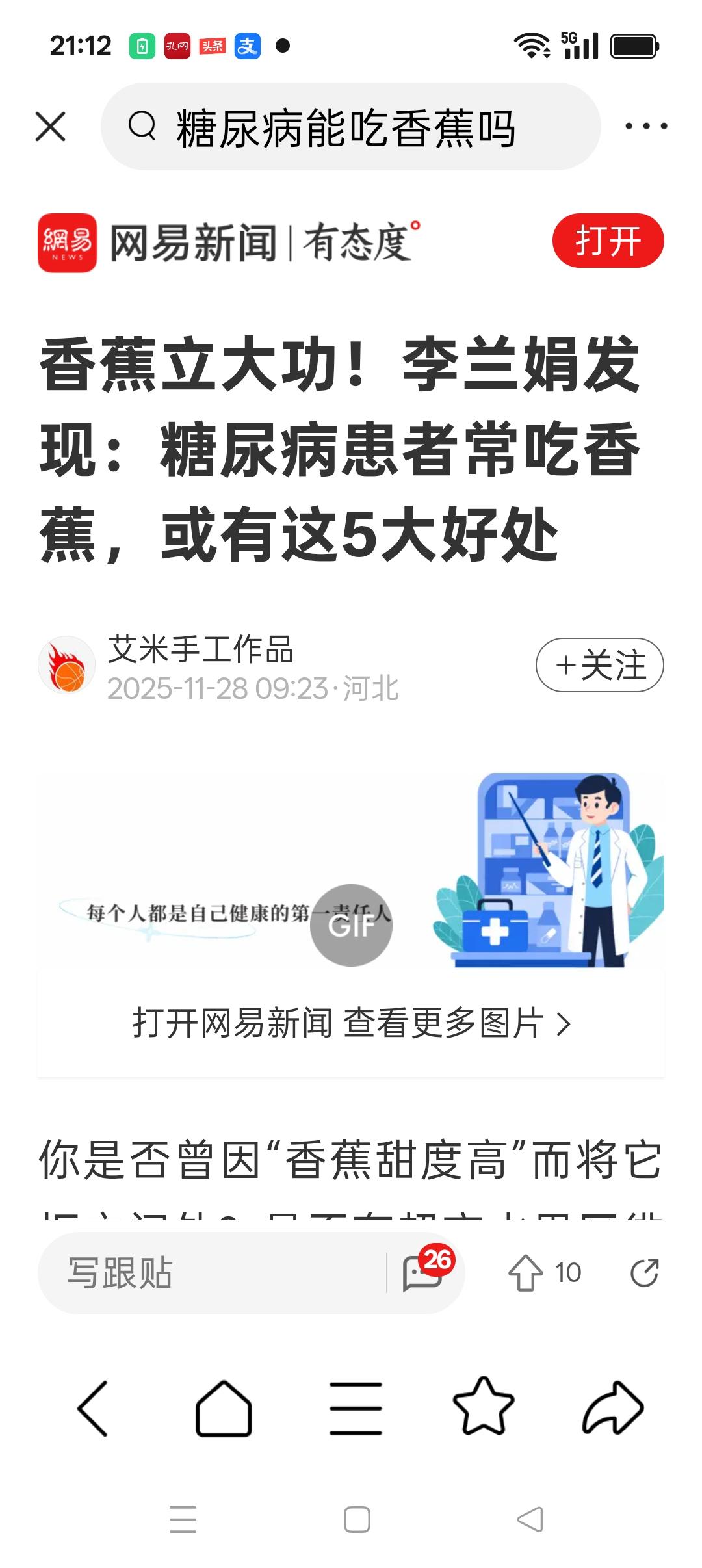 我以前非常喜欢吃香蕉,前几年查出来血糖高后医生就不让我吃香蕉了,说香蕉含糖量大,