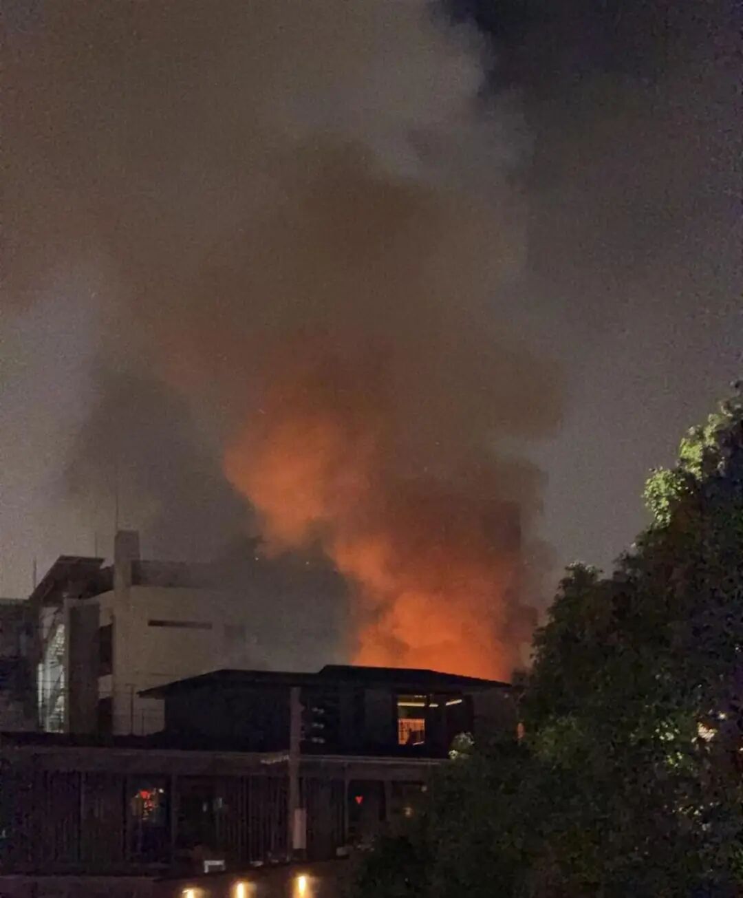 现场一名目击者告诉极目新闻记者,事发地在十字酒店附近,起火的是一家烧烤店,当时烟很大,有20余辆消防车赶到现场。