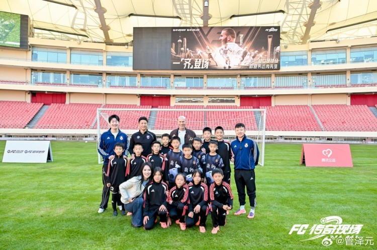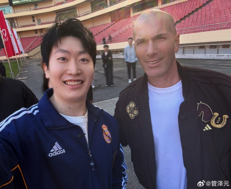 管泽元分享和齐达内合照:昨日在虹口足球场踢球碰到一个光头大爷