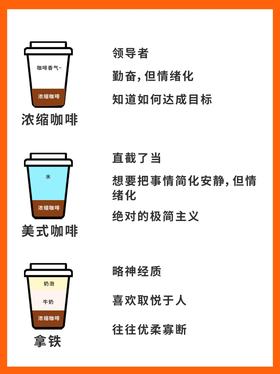 你喝的咖啡暴露了你的性格[图片] 喝咖啡看性格是一种流行文化,它将人们喝咖啡的选择与他们的性格特质联系起来,这种说法通常是非正式的,没有科学依据的,但它提供了一种有趣的途径...让人们通过简单的日常喝咖啡的选择来探索自己的性格! 黑咖啡 咖啡 我的咖啡日记 今天你喝咖啡了吗 咖啡推荐 咖啡日常 我的咖啡是日记