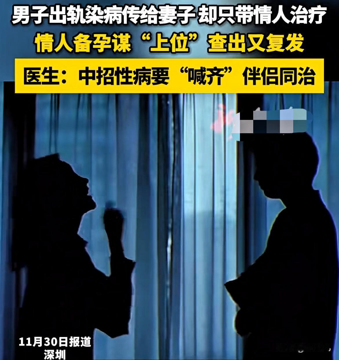 “太不负责任了!”深圳,50多岁的工厂老板,出轨把病传给了妻子,可他自己只带情人去治疗。更离谱的是,一年后情人为备孕去复查,结果病又复发,这才发现原来这位老板治疗完了,还经常回家找老婆,最终妻子无辜中招! 出了事,他第一反应保护的却不是家,而是外面的人。更气的是,明明是自己犯错,却让无辜的妻子承担最危险的后果。 很多婚外情为什么能烂成这个样子?因为有人总觉得家是最安全的地方,反正老婆不会跑,出了事再回来补救。但感情不是避风港! 其实,不管男人女人,一段关系你可以不爱了,但不能不负责,你可以做错,但不能让无辜的人替你付代价。 这件事也再次提醒大家,出轨不是最可怕的,无责任、无底线才是真正毁人的东西。 关于这件事,你们怎么看? (信息来源:新晚报)