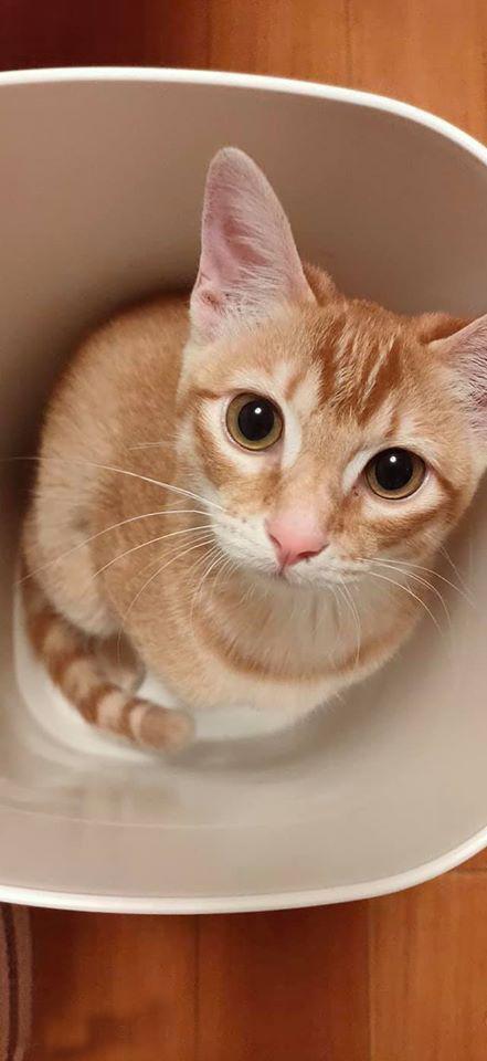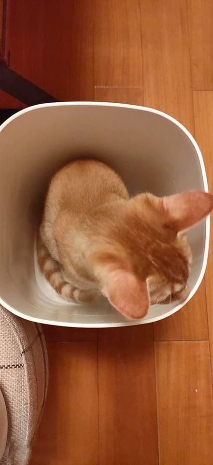 家里的猫咪意识到自己闯祸了以后,躲在垃圾桶里不敢出来
