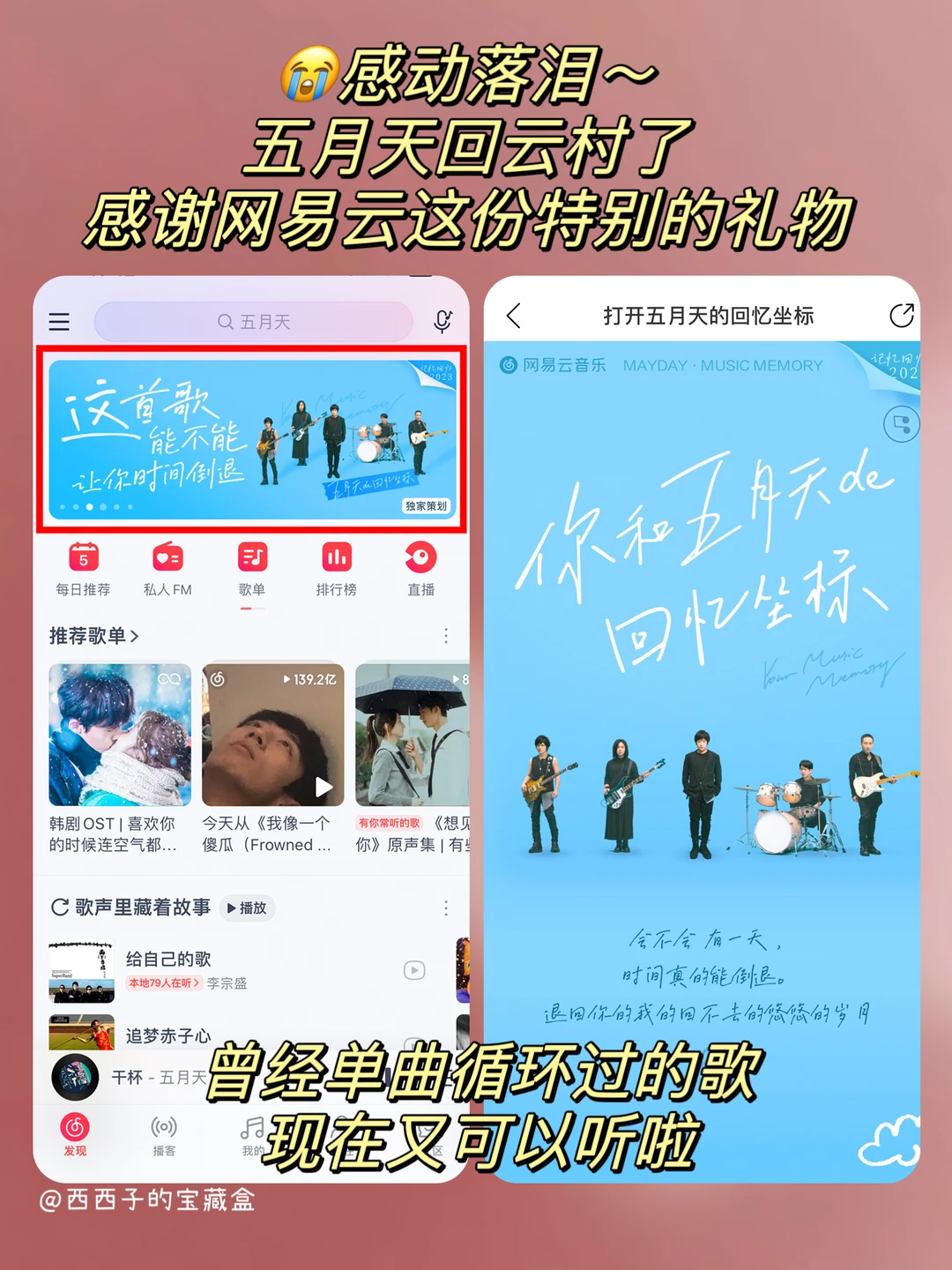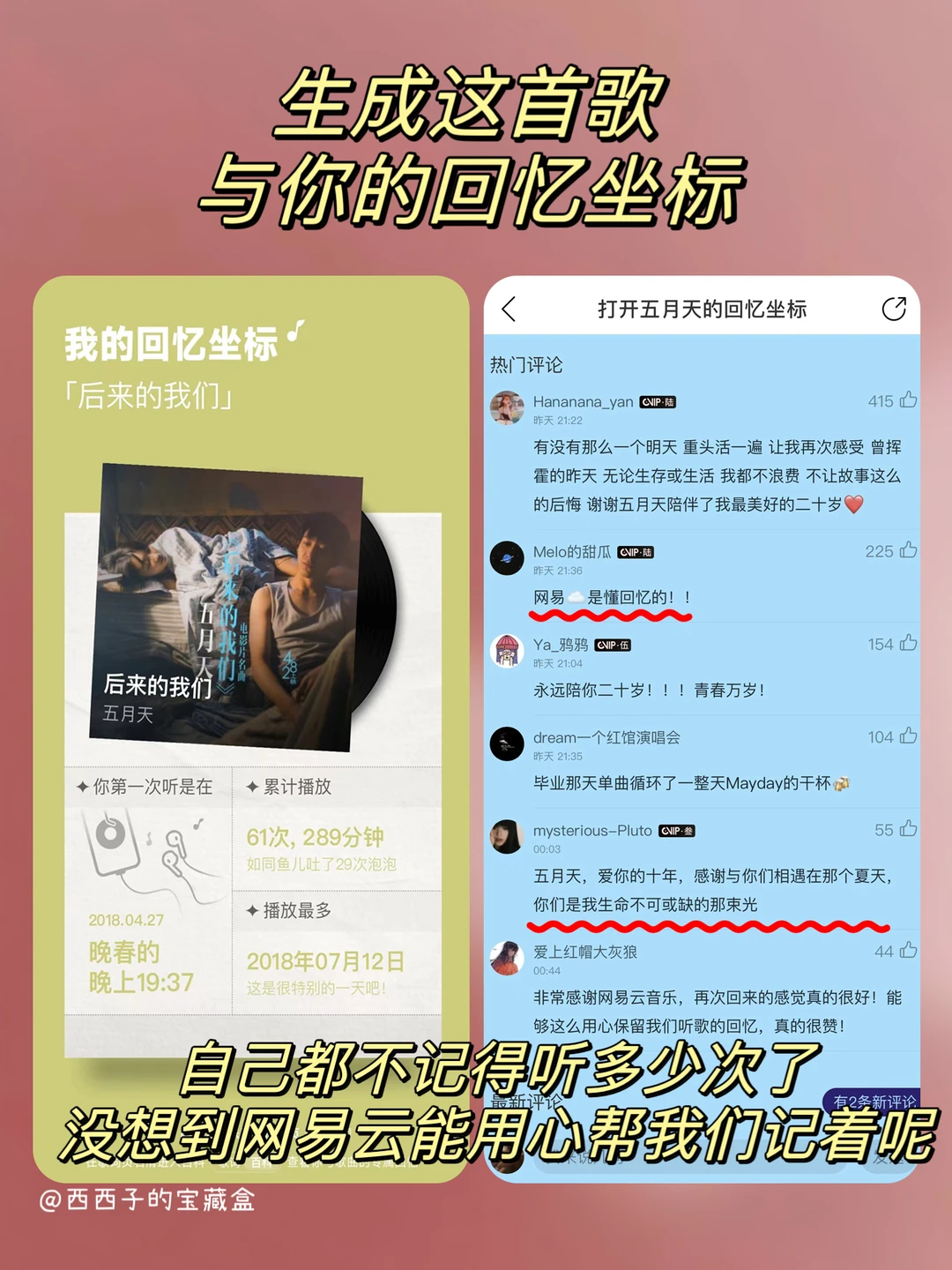 [鼓掌R]现在云村就能🆓听五月天的歌③个月,还能通过回忆坐标看到这首歌的发行时间,🎧你第一次听的时间,累积播放的时长等…