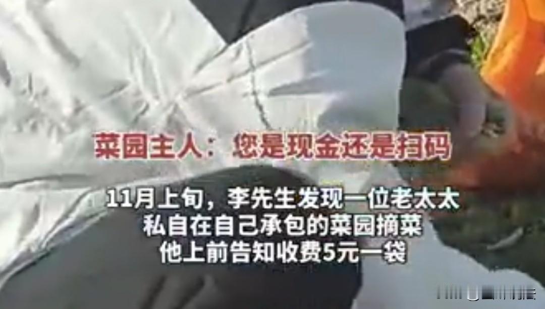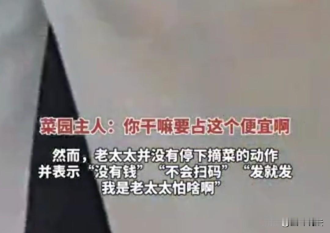 “我是老太太我怕啥!”北京,老人在菜园偷菜被发现,菜园主人和她说5元一袋,老太太却说没有钱也不会扫码,当菜园主人质问她干嘛占便宜时,老太太回怼说:我70多岁了,老一个太太我怕啥,边回怼还边摘菜,并没有停下的意思。 李先生想做蔬菜生意,他考察了很久,觉得还是自产自销比较好,打算承包一片地种菜。 然而承包一片地也不是那么好承包的,要考虑很多问题。 李先生一想到网上看到的,农作物被哄抢的事情他就担忧,害怕自己也会遇到这样的事情,这样一年白干还自掏腰包。 但做什么事情都不能够十全十美,总会有点缺憾,想得越多越做不成,李先生打算做了再说。 但承包地也要谨慎,能够避开一些问题肯定会好一些。李先生经过多番查看,最终选好了地。 李先生承包菜地一年多,时不时会遇到私自摘菜的情况,今年10月,为了防止他人摘菜私自,他还在菜地边的电线杆上树干上贴上了20多张提醒。 即使是这样,但还是避免不了有些脸皮厚的人,根本不把提醒当回事,照样摘菜。 但这些人一旦被李先生遇到,他们都会选择逃跑,或者按照李先生的要求把菜买下。 可有些人却油盐不进,即使被李先生发现,依然不停止摘下菜行为。今年11月中旬,李先生就遇到过这种情形,让他非常无奈。 当时一位老太太正在李先生的地里摘菜,她拿了一个大布袋,里面装了不少的菜,李先生出现她不慌不忙。 李先生告诉老太太,说这个菜要她花钱买,他不要多只收5元,询问老太太是现金还是扫码? 老太太说:我都70多了,没有现金也不会扫码。 合着她就是想白嫖,李先生看着她继续摘菜,没有停下来的意思,质问她干嘛占便宜,你欺负我是农民吗? 老太太理直气壮的回答,说他一个老太太怕啥,她又不是偷,她刚刚吃饭回来路过,而且李先生不是已经知道了吗? 李先生都无语了,被抓现行还说不是偷。老太太还倚老卖老,仗着年纪大了不起的样子。 看着老太太嚣张的样子,李先生觉得要求她付5元钱把菜买下应该很难,即使报警也没有什么用,老太太都70多了,民警做多也是教育一下,又不会受到处罚。 而且他也害怕和老太太争执下去,老太太耍无赖,一不小心出个什么意外,自己也是有理说不清,搞不好还惹一身麻烦。 李先生虽然很气,但又拿老太太没有办法,只能无奈要求她离开。 李先生确实是无奈,毕竟老太太也只摘了一点菜,虽然她的行为构成盗窃行为,但她已经70多了。 《治安管理处罚法》第49条规定:盗窃、诈骗、哄抢、抢夺、敲诈勒索或者故意损毁公私财物的,可处五日以上十日以下拘留,可并处五百元以下罚款;情节较重的,处十日以上十五日以下拘留,可并处一千元以下罚款。但70周岁以上的,不执行行政拘留处罚,仅需缴纳罚款。 老太太应该是知道她这个年纪不会受到处罚,所以才如此肆无忌惮。 其实李先生可以选择报警,虽然老太太不会受到处罚,但需要缴纳罚款,这也是对她的一种惩罚。也许李先生不计较,下一次老太太还会出现在菜地里。