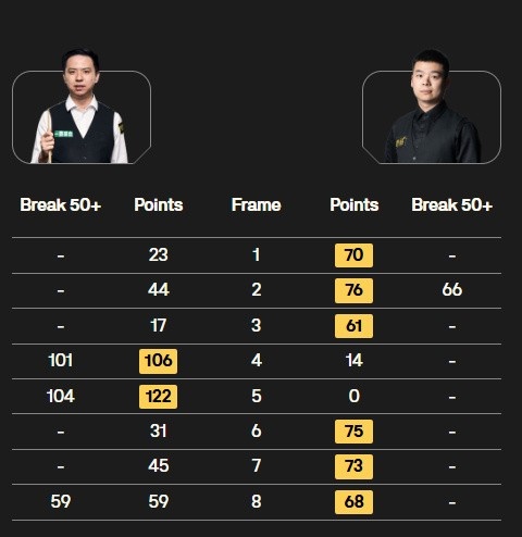 庞俊旭打出单杆66分,肖国栋打出两杆破百(101、104)和一杆50+(59),上半场庞俊旭3-1领先肖国栋,中场休息后庞俊旭连下三城锁定胜局,最终6-2战胜肖国栋,晋级16强。