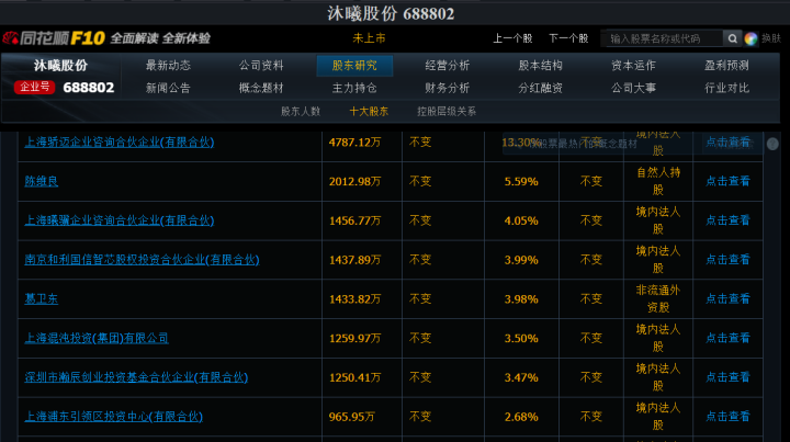 私募大佬葛卫东和他的混沌投资分别持有沐曦股份1433.82万股和1259.97万股,持股比例分别为3.98%和3.5%。
