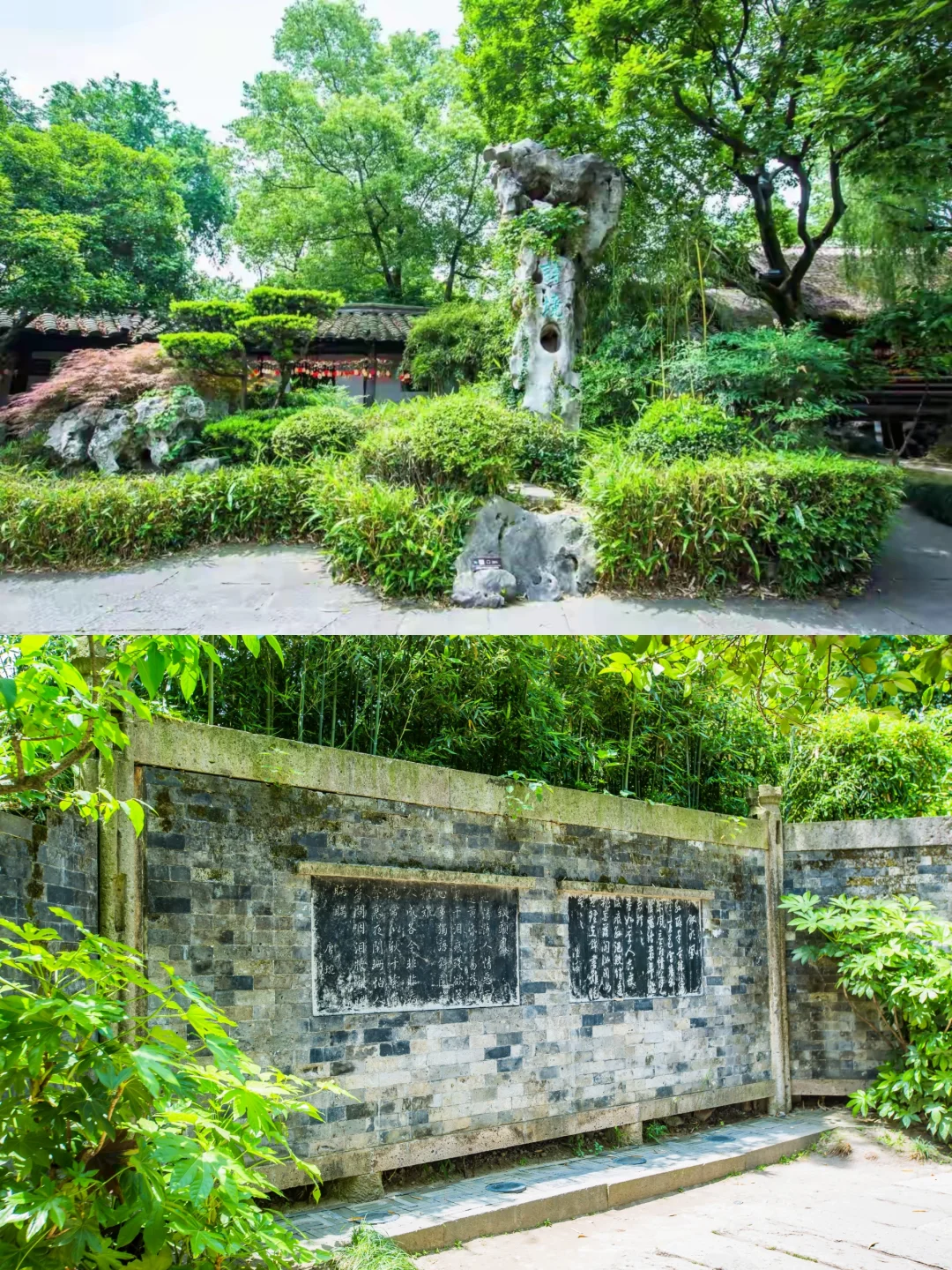 题扇桥头看白墙题字戏谑古今,墨池边新柳垂绦,恍惚与王羲之共饮一壶明前茶。