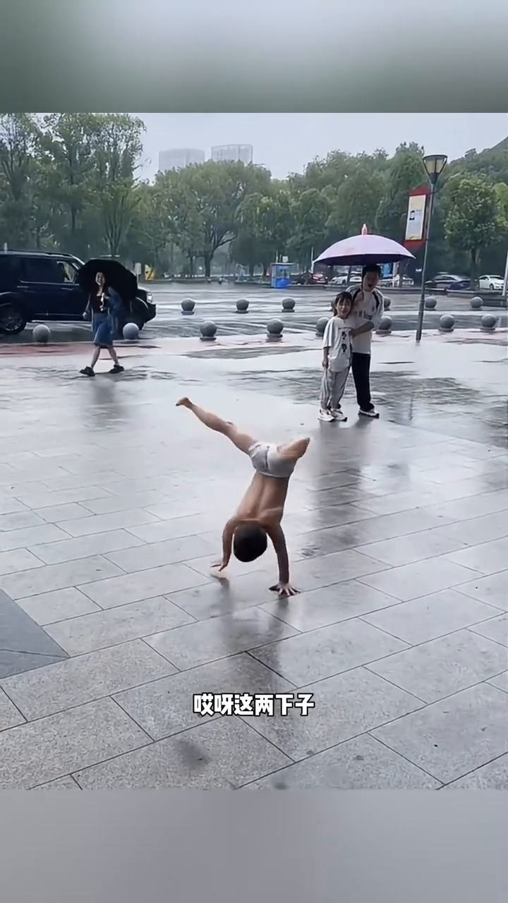 在把不住尿的年纪却把住了撩妹的技能。这小孩长大了可了不得,这么小就慢慢的开始走向人生巅峰了。这两下子耍出了十年的功底,这给旁边的路人都看呆了。顶着雨看,本以为是王者级别的了,直到他爸出现的那一刻,看来今天又少不了一顿毒打了。