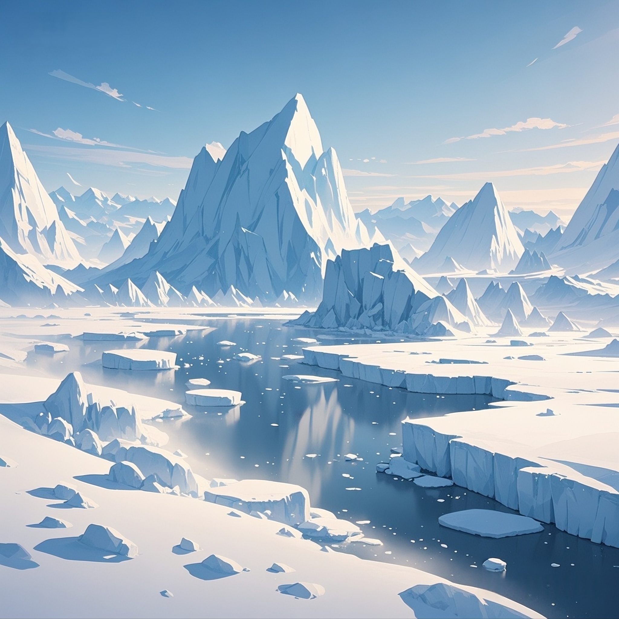 冰川如巨龙横卧,雪原似绸缎延绵,这里是时间的秘境,静谧而永恒。
