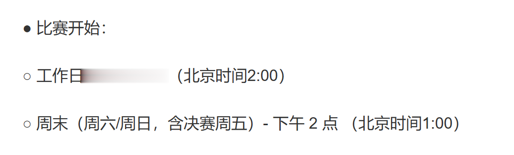○周末(周六/周日,含决赛周五)-北京时间1:00