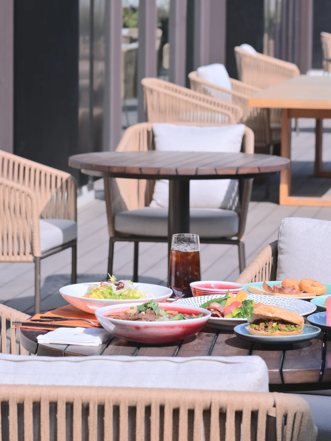 我们直接把早餐搬到了外面,恰好酒店也可以户外野餐,各种野餐椅、桌子都很齐全,早餐真的好丰盛!!还有饮品可以挑选,真的很想继续住上一周啊啊……