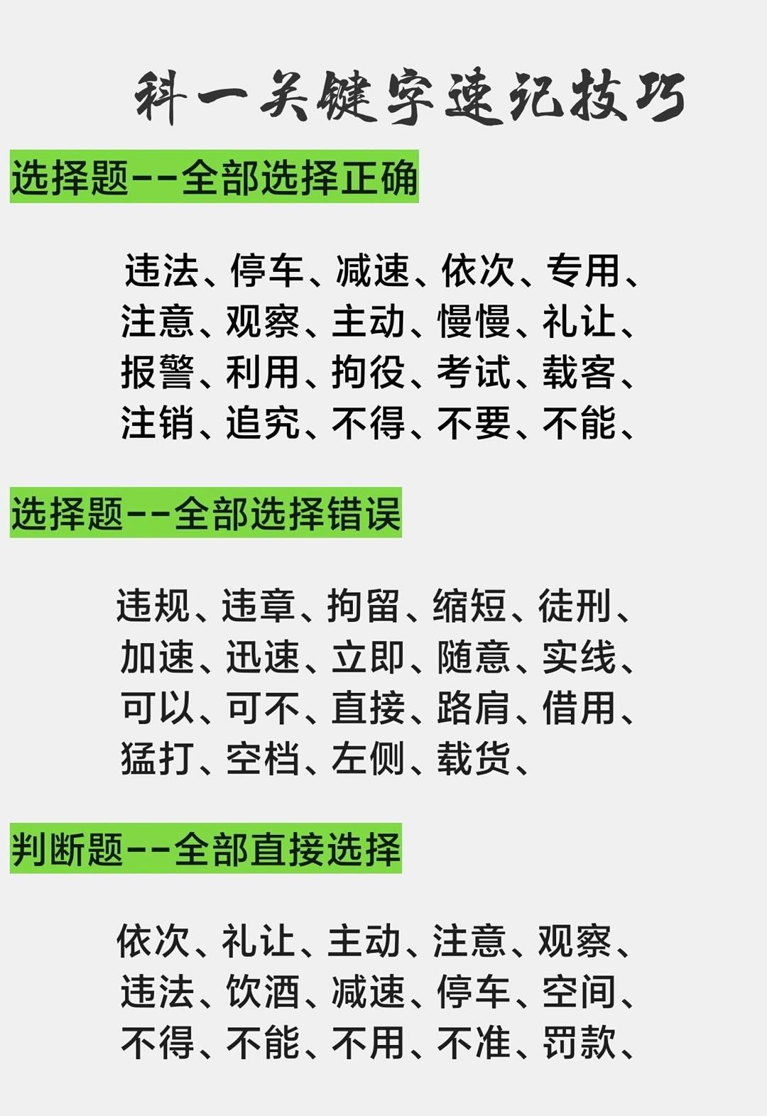 考驾照 科一科四速成答题技巧 科目一科目四理论技巧辅导 驾考一把过 科一科四技巧