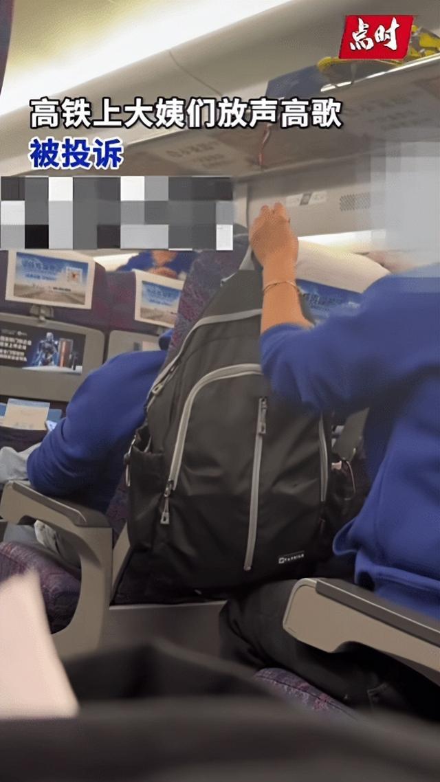 据点时新闻12月1日报道,张女士在社交平台发布视频称,她乘坐高铁期间,一群大姨在车厢内放声歌唱,直至被乘警规劝、乘客明确反对后才停止,引发广泛关注。