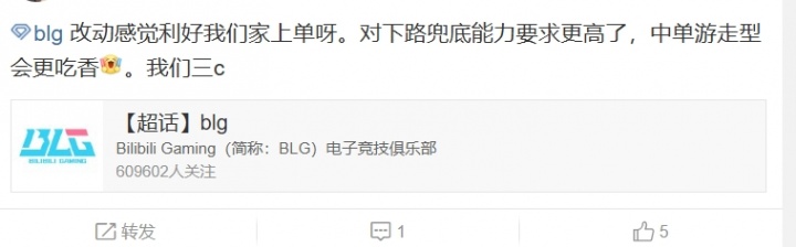 直播吧12月2日讯昨日英雄联盟官方发布了明年的游戏改动内容,BLG粉丝们对此展开讨论。