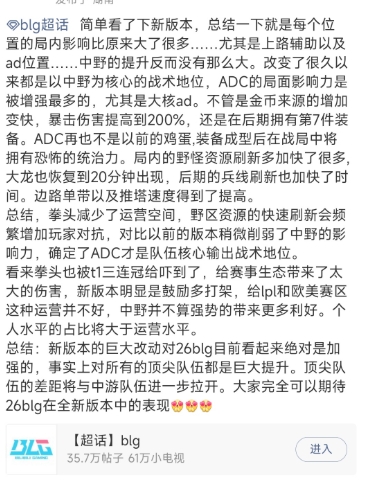 BLG粉丝看新版改动提前开香槟:新版本的改动对BLG绝对是加强的!