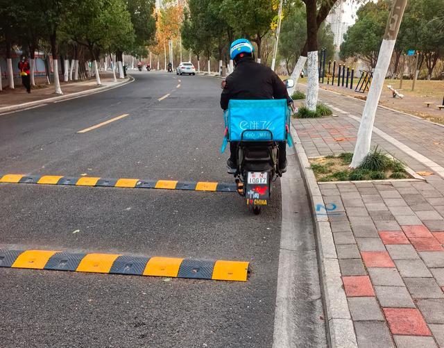 记者一路观察发现,新更换的减速带与路牙石之间留有一定间隙。据了解,此举是为方便外卖小哥和骑自行车的市民从间隙通过,避免通行时产生颠簸。