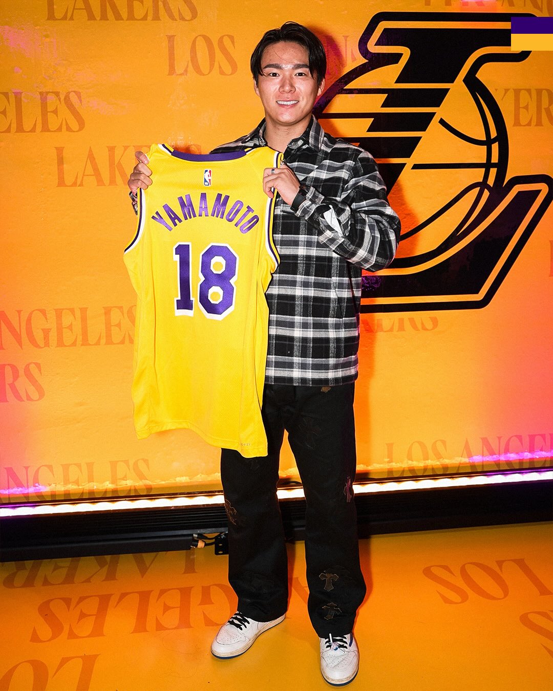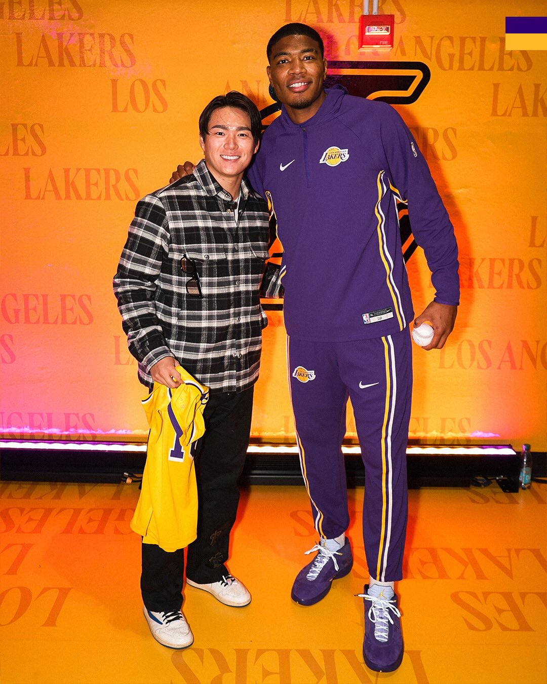 湖人官方ins发布。山本与八村垒的合影。