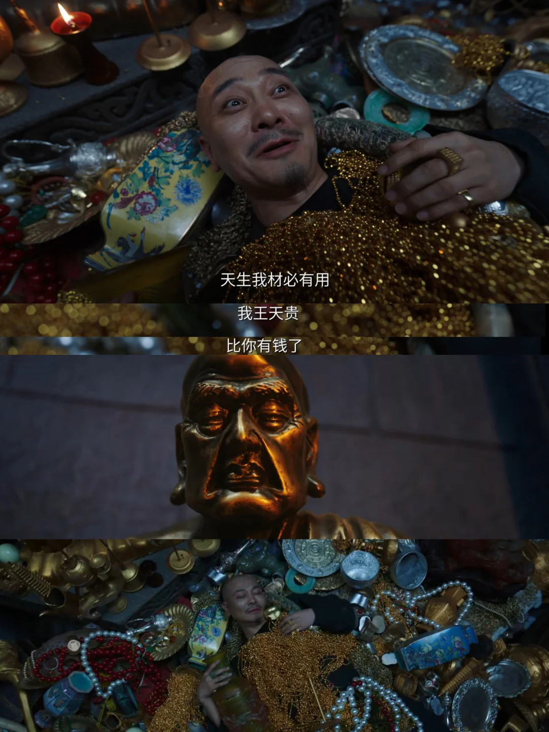🧚🏻♀️剧情:妈耶!这剧刻画的小人物命运也太真实了!复杂又多面,爱恨贪嗔痴具象化了!贪婪的王天贵死与自己的贪婪,在知道有宝藏之后立马心动,就连si之前最后一句话都是“老天,我王天贵,比你有钱了”!