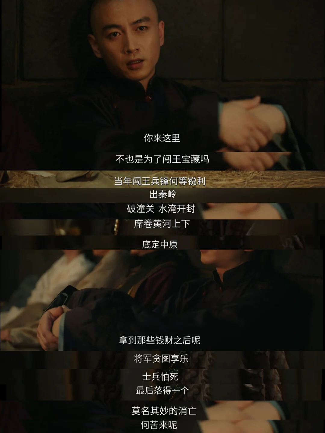 ‼️滑头商人李百万,阴狠又有自己的原则,他可以轻而易举的猜到闯王宝藏还在,也可以凭一己之力撬动经济,在他的眼里,错误的从来不是钱,而是人,还记得他当时对古平原说的“天下无不可用之钱,无不可用之人”,何等的自信又是何等的复杂[暗中观察R]