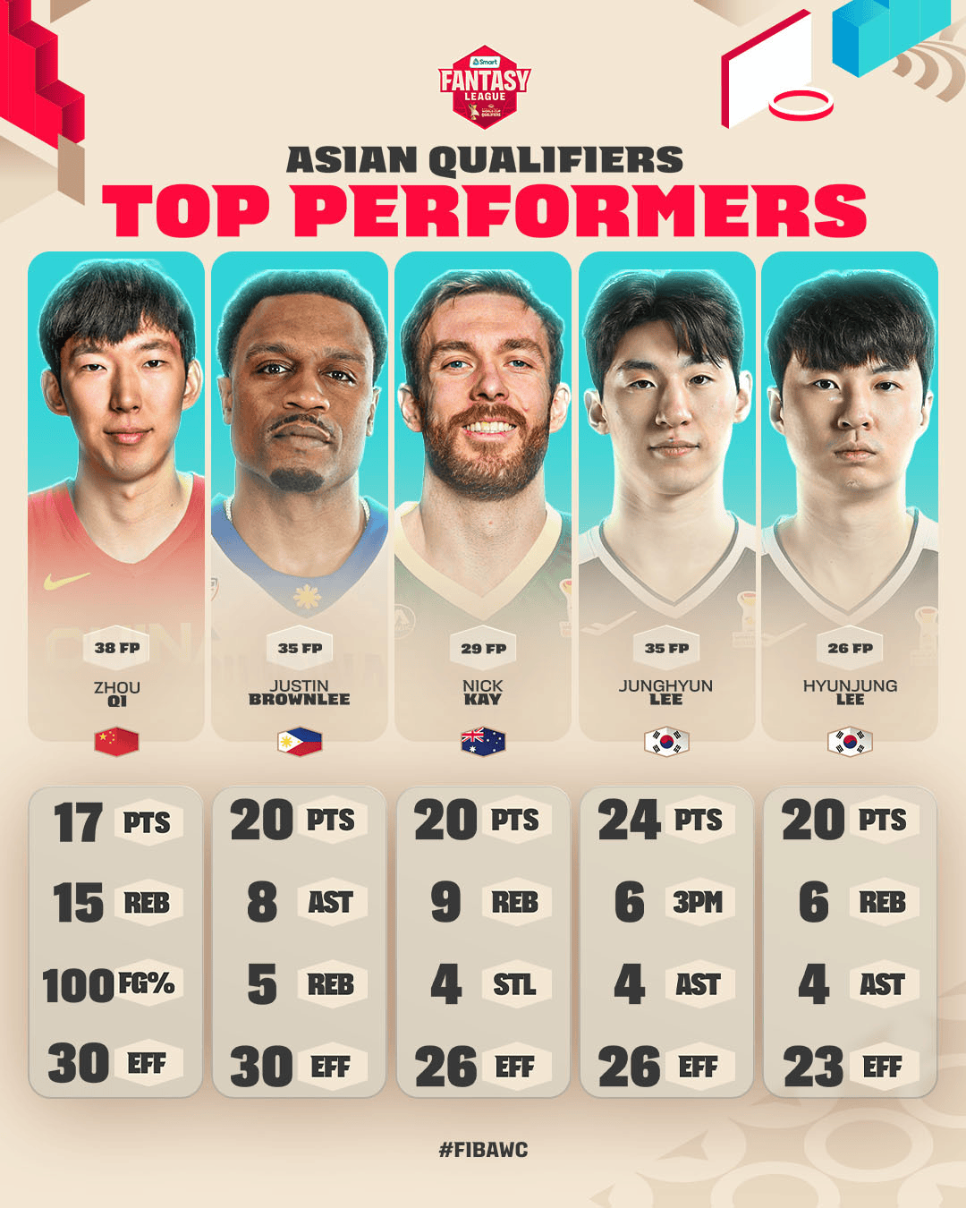 其余四人是菲律宾球员贾斯汀-布朗利、澳大利亚球员尼克-凯、韩国球员李贤重、李政铉。