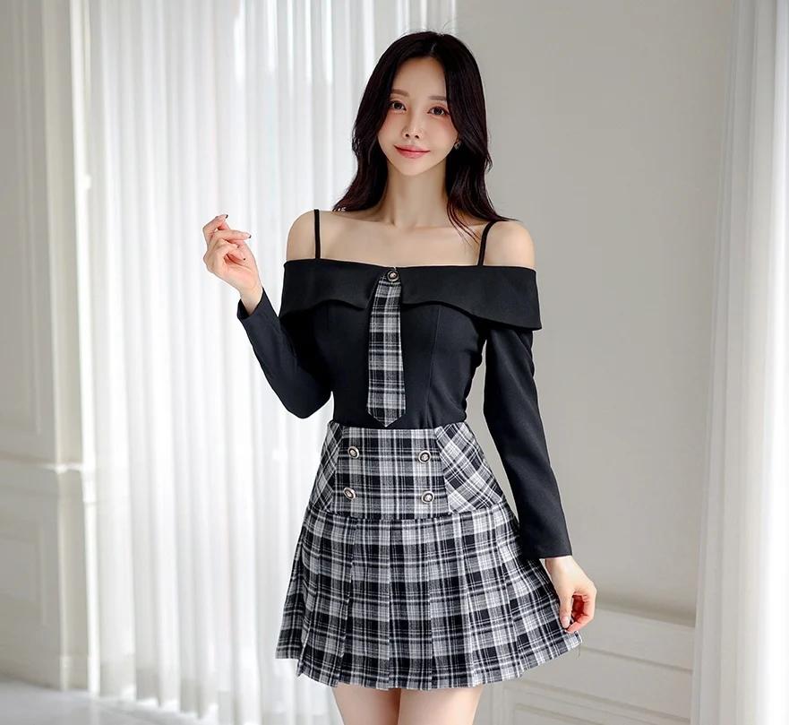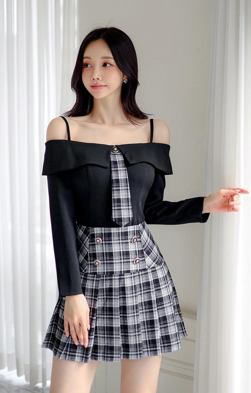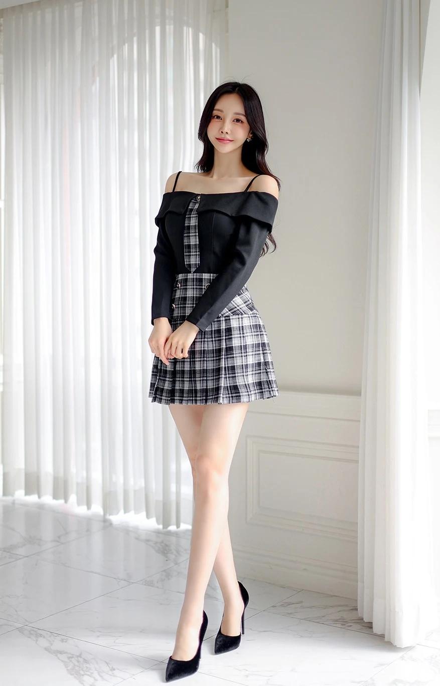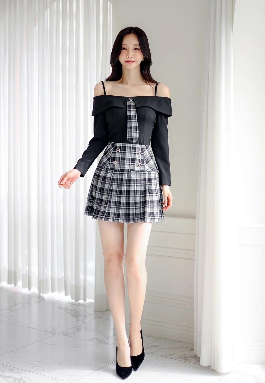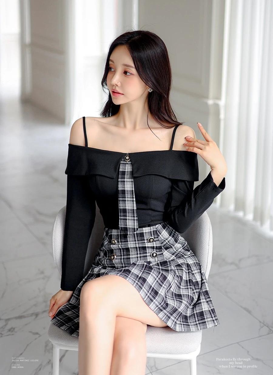 孙允珠的穿搭真的太会玩了!就说那套露肩上衣配格纹短裙,黑色露肩上衣的一字肩设计,直接把优美肩颈线条秀出来,性感又时尚,谁看了不迷糊。黑白格纹短裙侧边皮革拼接,层次感一下就丰富起来。再配上黑色绑带高跟鞋,精致度直接拉满,在简约舒适的室内,妥妥的时尚焦点。 还有那套灰色格纹套装,泡泡袖和短裤碰撞出轻复古的感觉。黑丝裹着纤细双腿,踩着酒红短靴走在砖石街道,慵懒又迷人。VALET PARKING 标牌下,手袋轻摇,绿植和橱窗都成了时尚背景,每一步都像是优雅诗篇。 #生活随手拍# 甜美小仙女的穿搭 穿搭如何自带高级感?