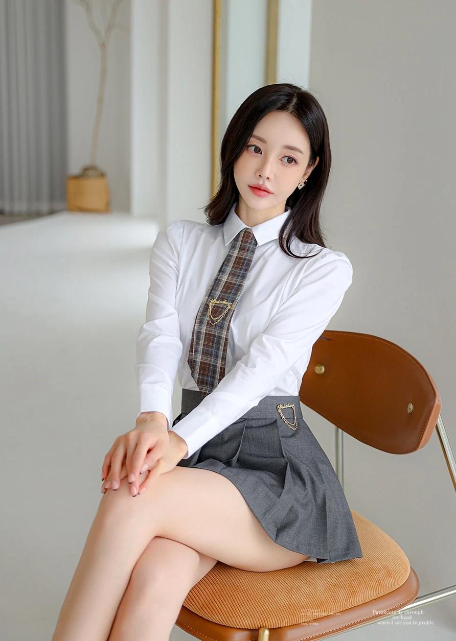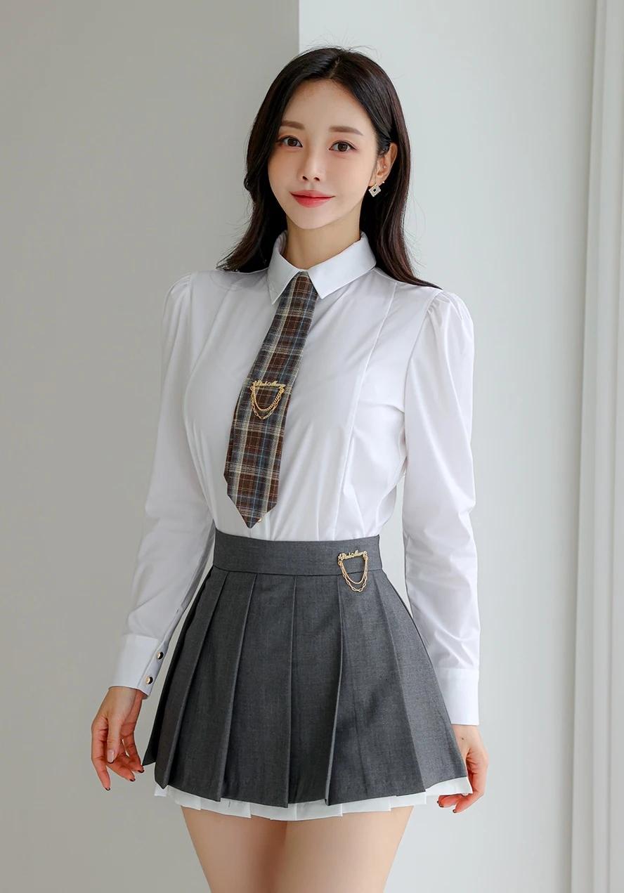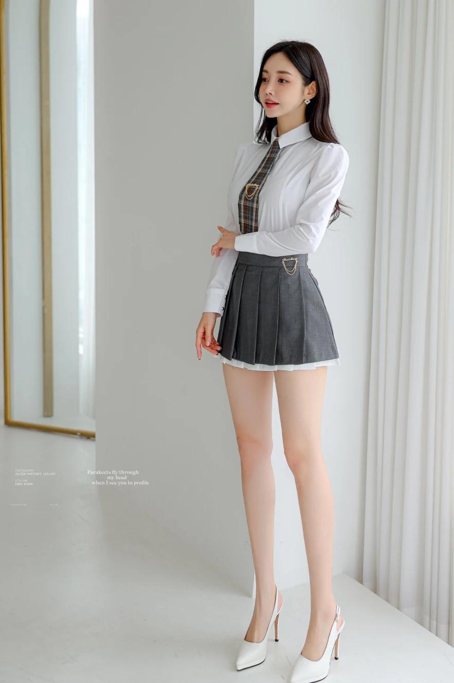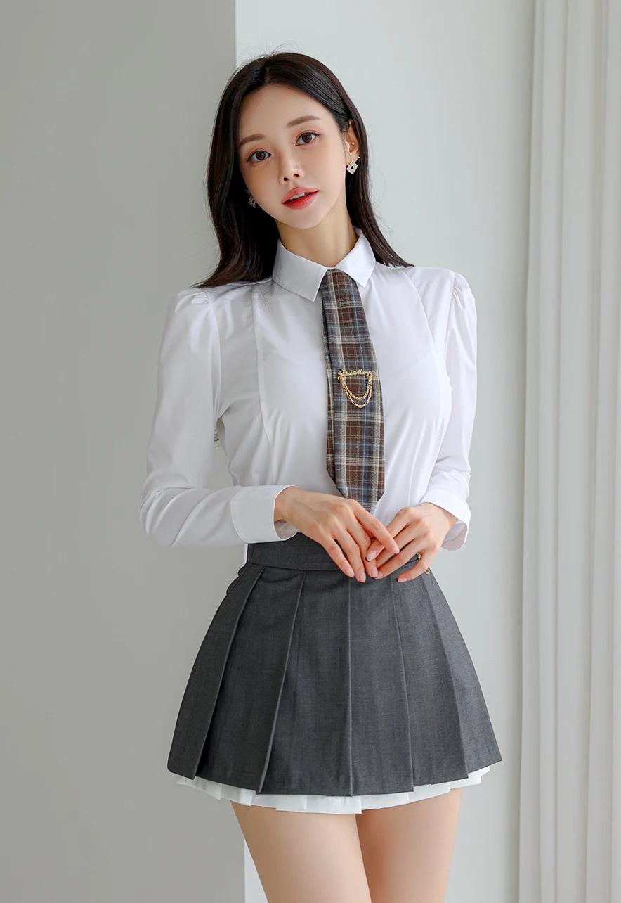 孙允珠的优雅校园风穿搭太绝了!白色衬衫配格子领带,再搭条灰色百褶裙,青春甜美的感觉一下就有了。 她的穿搭总是很有巧思,像那组大片里,用设计感短上衣搭学院风百褶裙,珍珠元素和灰白背景一配,清新脱俗的优雅气质直接拉满。还有泡泡袖上衣配经典灰格短裙,蓬松袖口和百褶裙摆相互呼应,浅灰高跟鞋拉长腿部线条。交叠双手时尽显恬静气质,再加上背景花艺点缀,这妥妥就是初秋甜美穿搭范本,谁看了不心动啊! 分享日常生活中的感悟 热门时尚服饰