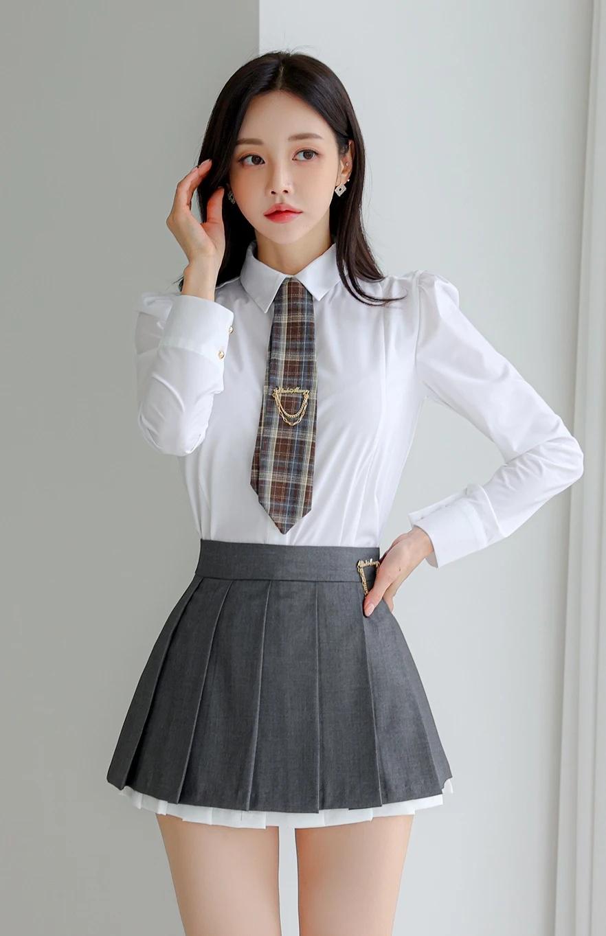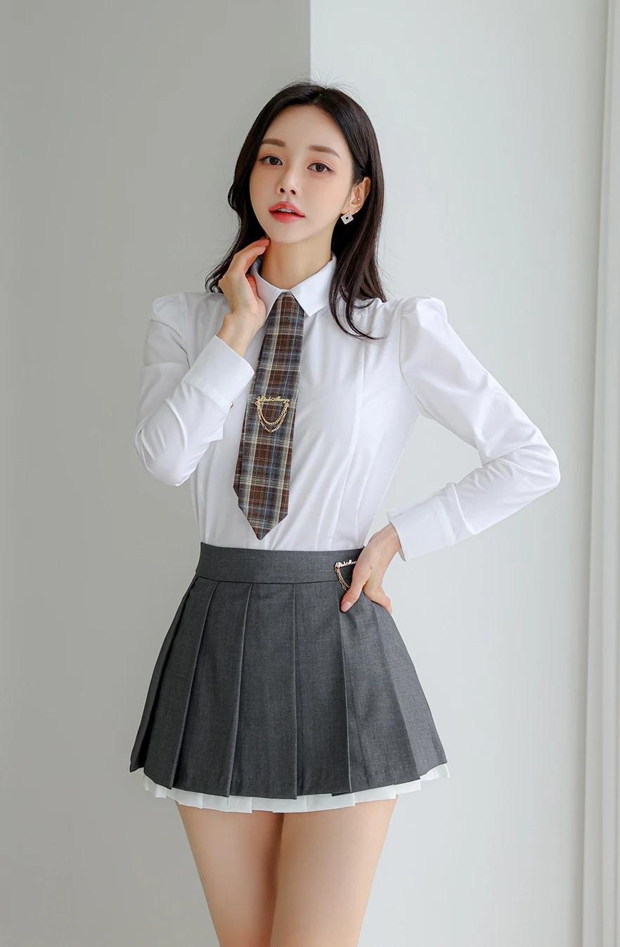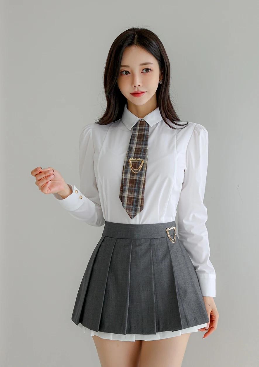 孙允珠的优雅校园风穿搭太绝了!白色衬衫配格子领带,再搭条灰色百褶裙,青春甜美的感觉一下就有了。 她的穿搭总是很有巧思,像那组大片里,用设计感短上衣搭学院风百褶裙,珍珠元素和灰白背景一配,清新脱俗的优雅气质直接拉满。还有泡泡袖上衣配经典灰格短裙,蓬松袖口和百褶裙摆相互呼应,浅灰高跟鞋拉长腿部线条。交叠双手时尽显恬静气质,再加上背景花艺点缀,这妥妥就是初秋甜美穿搭范本,谁看了不心动啊! 分享日常生活中的感悟 热门时尚服饰