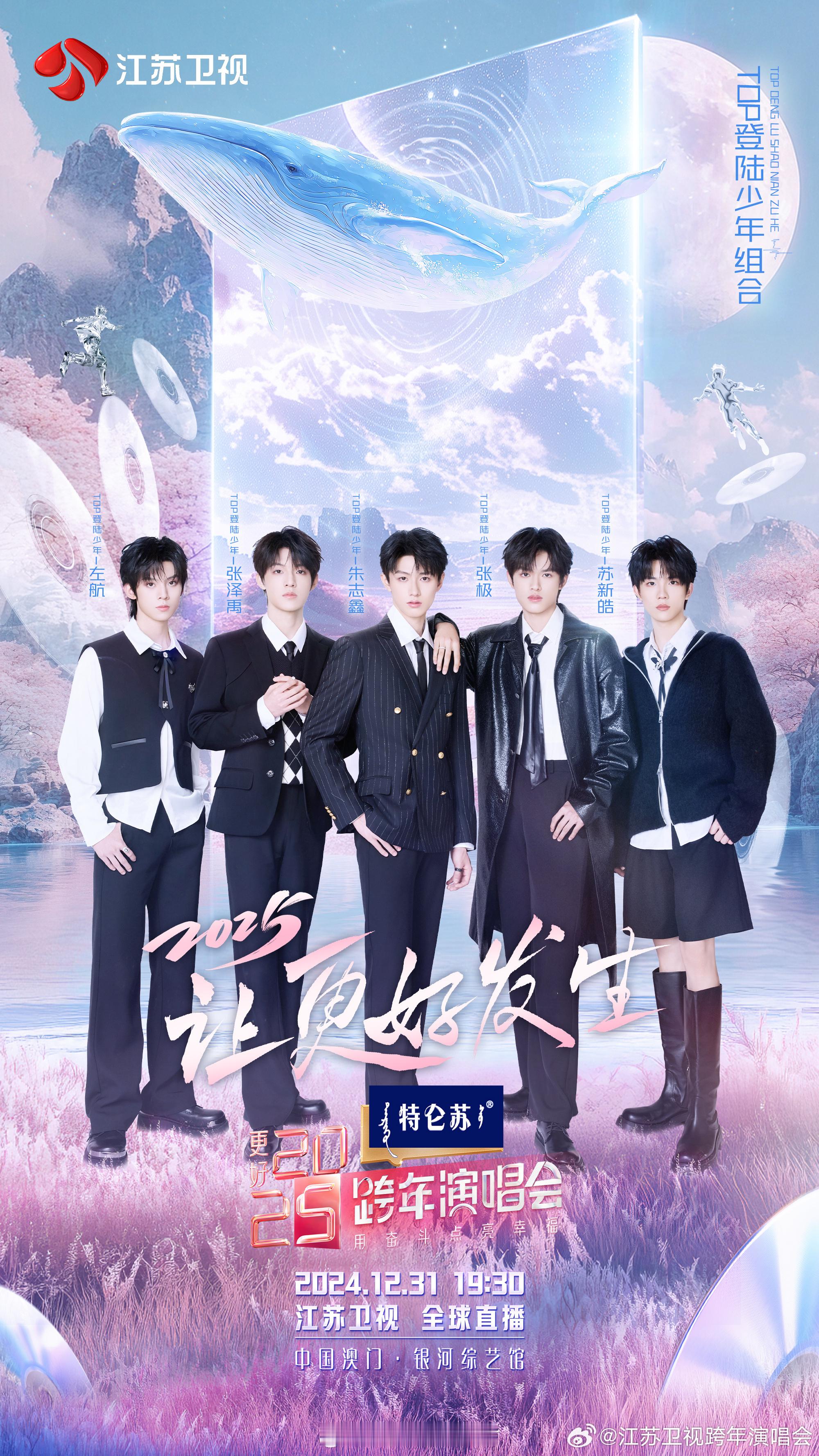 江苏卫视跨年第一波阵容歌手:压轴皇后——李宇春鼎流歌王——薛之谦港圈男神——谢霆锋地国队长——王俊凯唱演俱佳——刘宇宁魅力男声——黄子弘凡创三冠军——希林娜依高实力男声——王赫野流量男团——TOP登陆少年演员&偶像:魅力型男——曾舜晞肌肉男神——任嘉伦唱跳俱佳——喻言