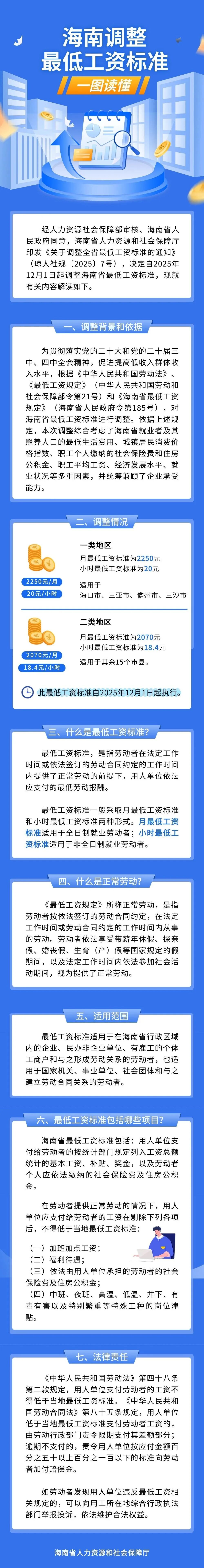 四、调整后的最低工资标准自2025年12月1日起执行,《海南省人力资源和社会保障厅关于调整全省最低工资标准的通知》(琼人社发〔2023〕111号)同时废止。