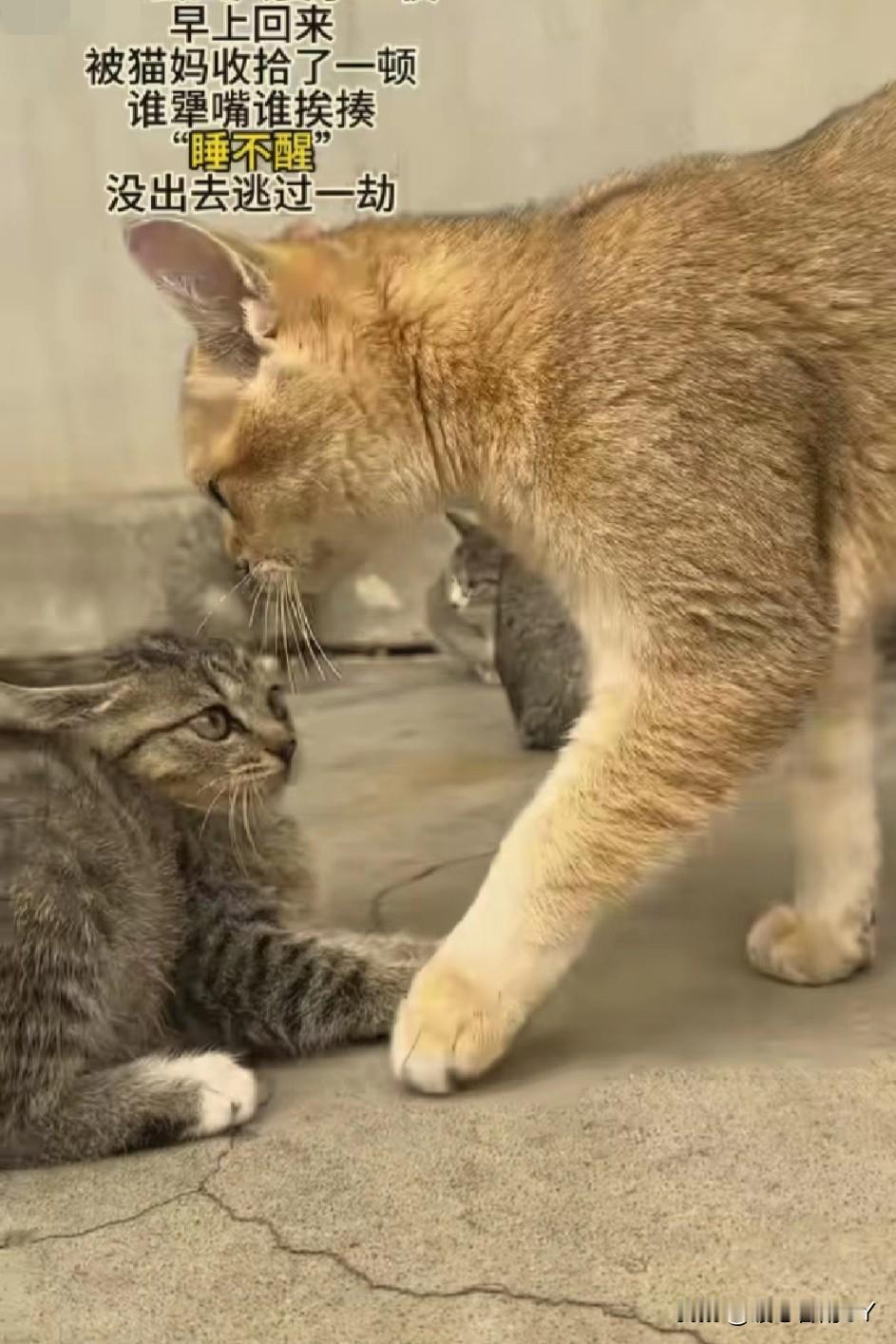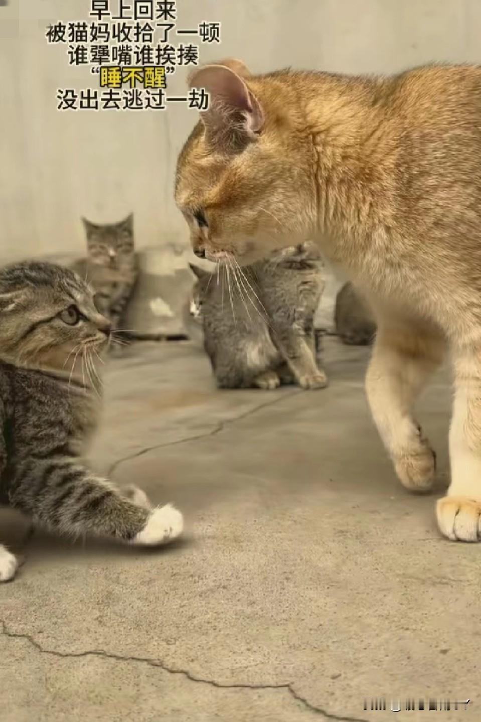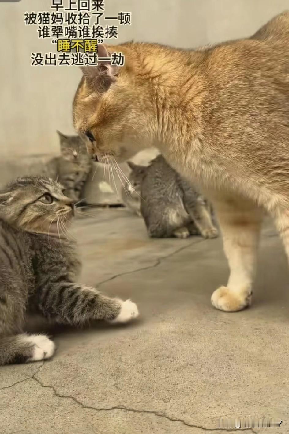 猫妈训子名场面!5只小猫4只夜不归宿,回家被“家法伺候” 5只小猫咪4只趁着夜色溜出去撒欢了一整晚,清晨归来便被猫妈唤到跟前“谈话”。 猫妈气场强大,绕着几只小崽来回踱步,眼神里满是“恨铁不成钢”的无奈。 但凡小猫稍有异动不安分的样子,立刻就会被猫妈“教训”一顿,小家伙们个个都被治得服服贴贴的。 只有那只没出去的小猫幸运躲过一劫,在一旁静静旁观这场“家庭大戏”。 这猫妈管教孩子的模样,活脱脱就是人类家长逮到孩子闯祸时的瞬间,又严厉又有爱,把养猫家庭的日常温馨与小调皮展现的淋漓尽致,堪称喵界亲子教育现场的真实缩影。 相信在猫妈的悉心教导下,这几只小猫以后肯定会乖乖听话,变身“猫界小乖宝”! 创作训练营开营啦 .