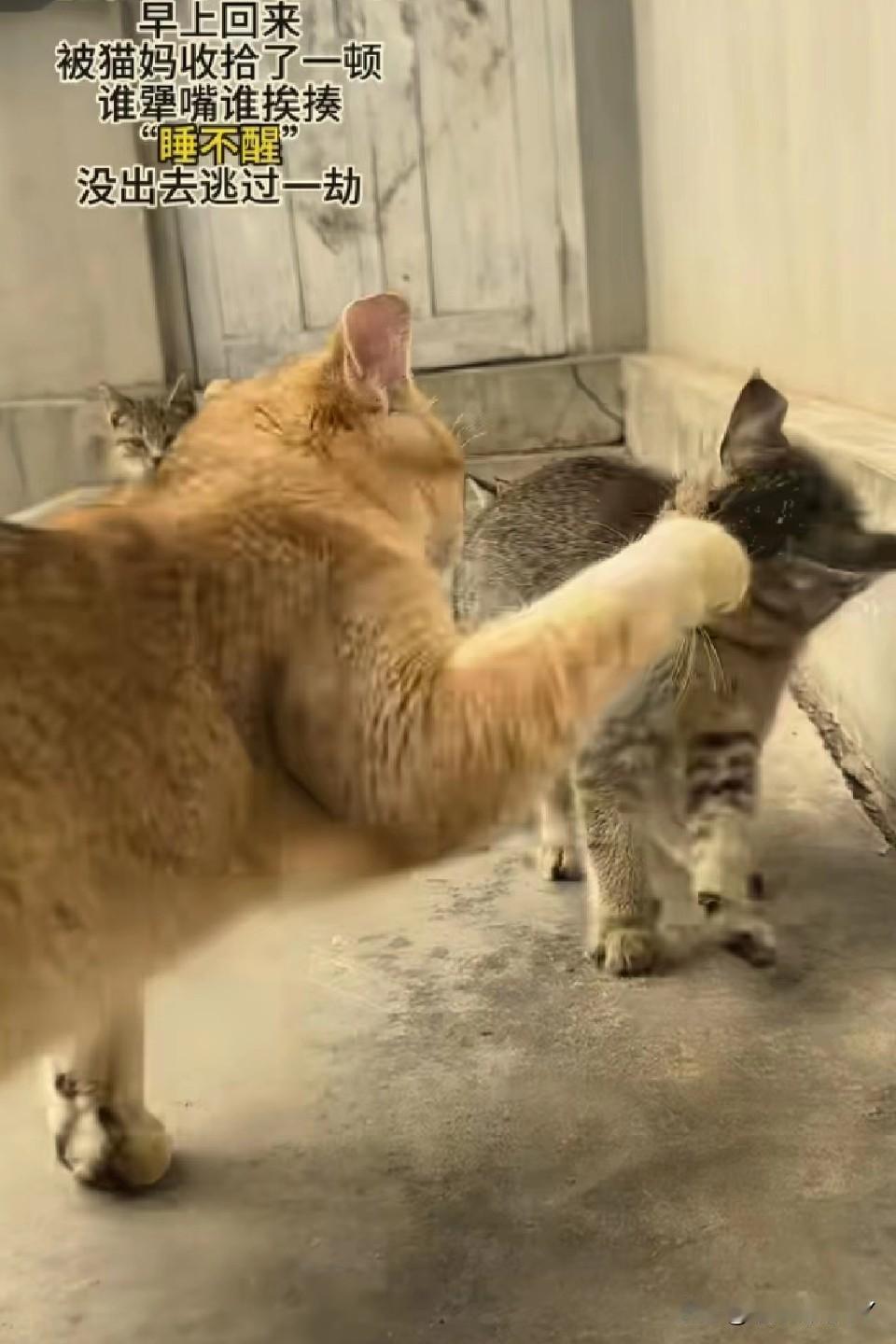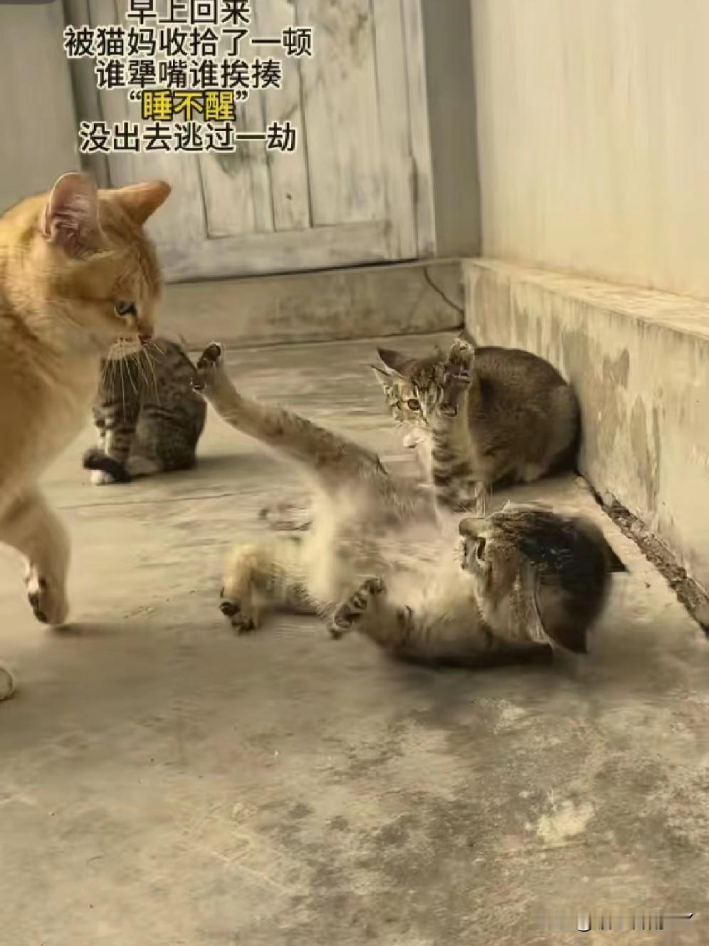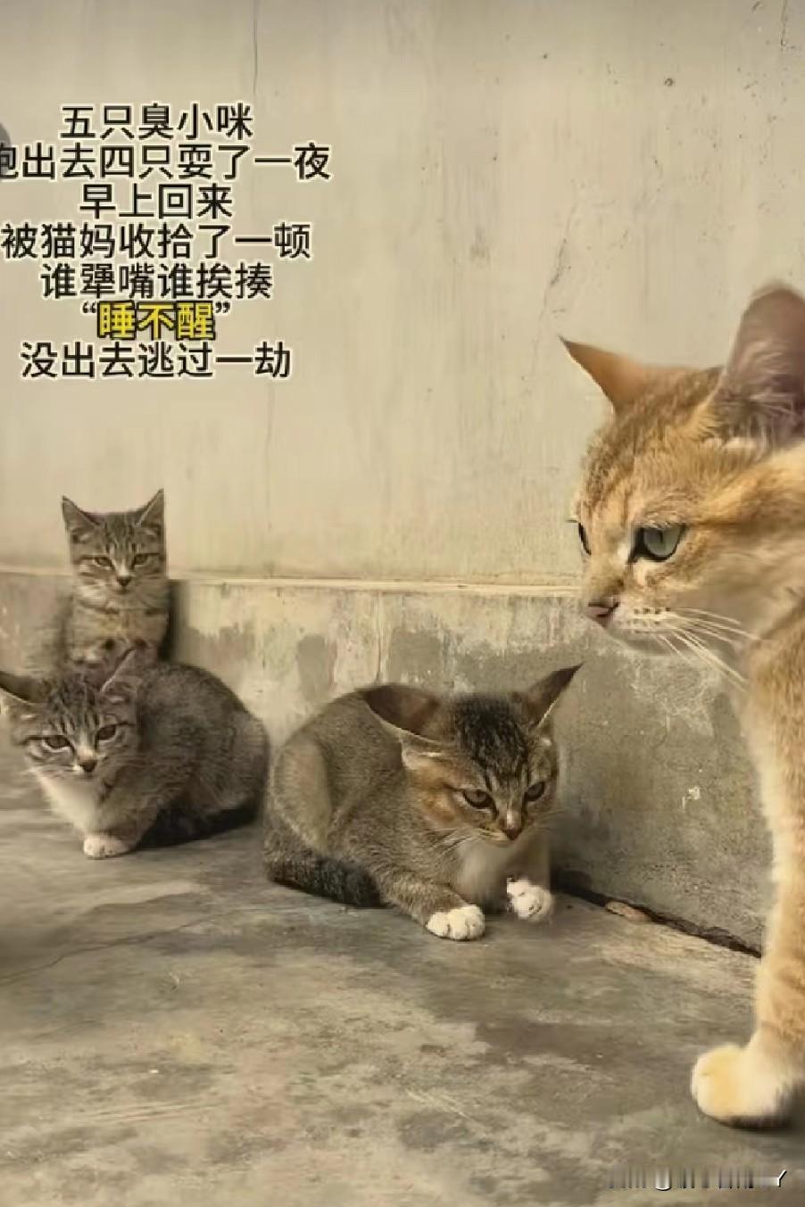 猫妈训子名场面!5只小猫4只夜不归宿,回家被“家法伺候” 5只小猫咪4只趁着夜