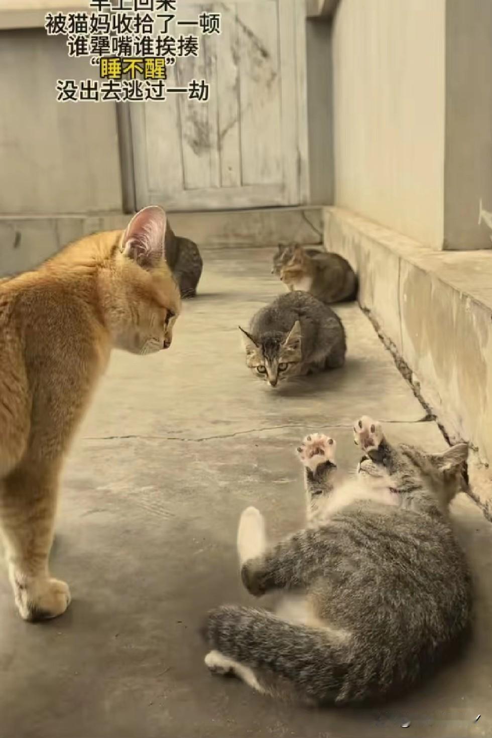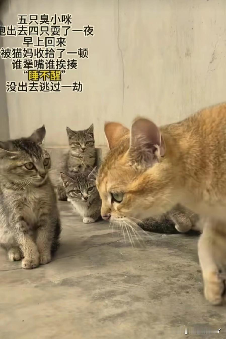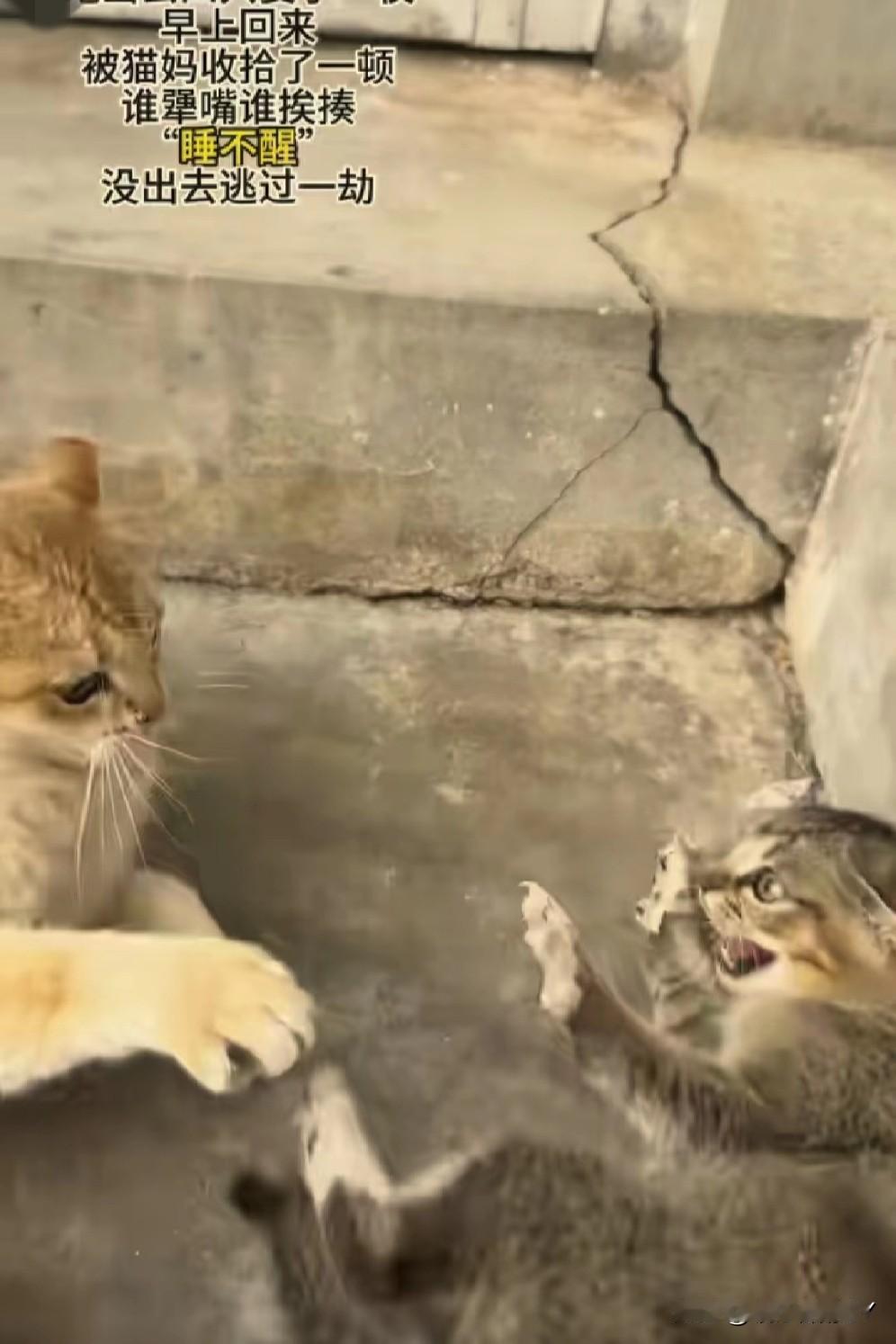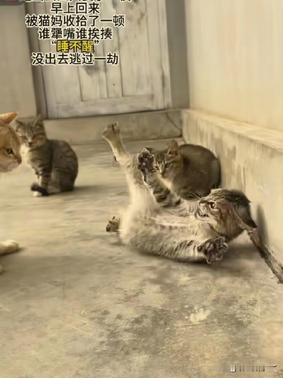猫妈训子名场面!5只小猫4只夜不归宿,回家被“家法伺候” 5只小猫咪4只趁着夜