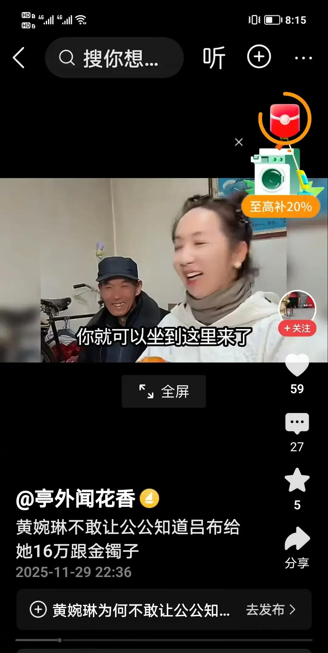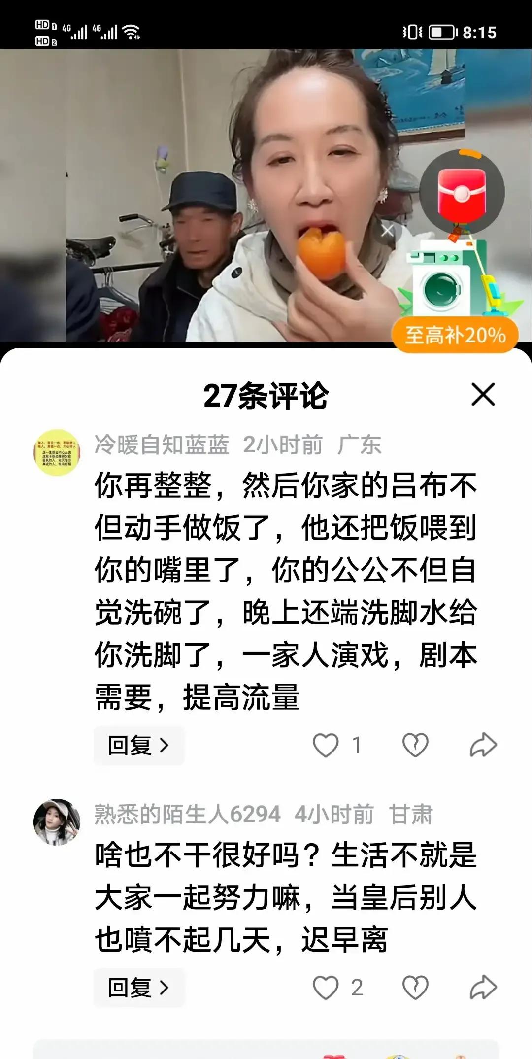 黄婉琳直播说吕布给了她十六万,弹幕瞬间炸成烟花。 我蹲在手机前差点把面喷出来,这姐们把老公喊成三国战力天花板,还面不改色地报出天价零花钱。 她公公在旁边憨笑,手里抹布擦得比谁都勤快,老公围着围裙端菜,画面像倒放十年前的家庭剧。 我盯着她手腕那只绿油油的手镯,忽然想起自己去年买九块九的运费险都纠结半天。 她说现在回家能直接点菜,老公问要不要加辣,公公抢着洗碗,连狗都学会给她叼拖鞋。 我数了数自己银行卡余额,再想想家里那位大爷窝在沙发指挥倒水的姿势,瞬间理解弹幕里那排山倒海的柠檬味。 十六万可能是玩笑,但人家把日子过成爽文是实打实。 我关掉直播去把地板拖了,老公抬头问今晚吃啥,我学着黄姐的语调说随便,心里盘算着下次发工资也给自己整点底气。 钱包鼓不鼓另说,先把气势支棱起来,万一哪天我也能随口报个价,让家里两位男士抢着洗碗呢。