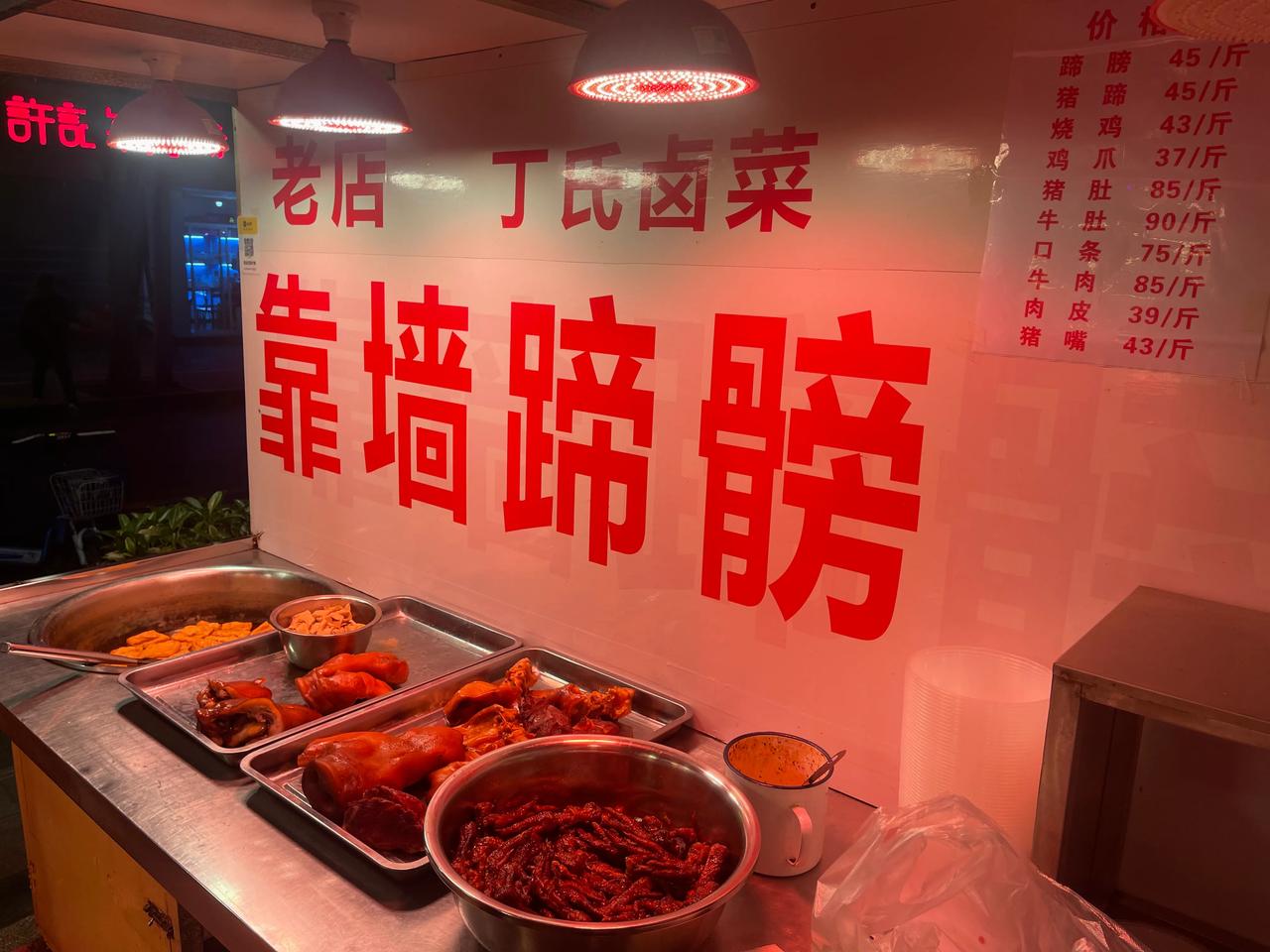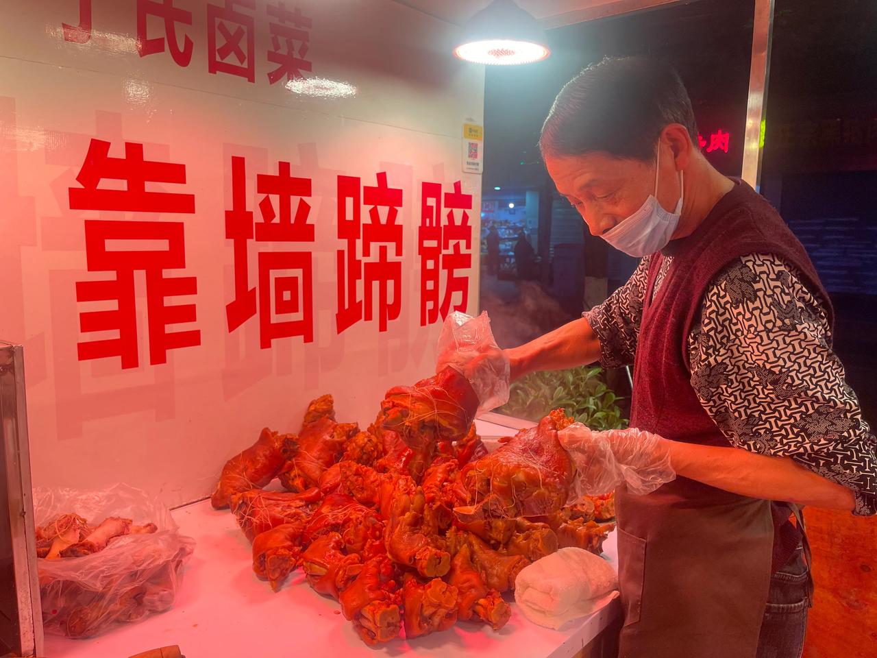 合肥四牌楼庐江路上,有一家开了30年的“丁氏卤菜”因为刚开的时候在墙边,蹄膀卖的火,所以也叫“靠墙蹄膀”。店里的三个招牌菜是蹄膀、烧鸡、猪蹄,其中蹄膀45元一斤是猪前腿做的,皮Q弹、肉不腻。店里的生意一直很好,都是几十年的老顾客。现在一天卖五千到一万元左右的卤菜,逢年过节期间更是能卖几万元。老板老丁今年58岁,有两个儿子,开了两家店。他靠着制作了30年的美味蹄膀,日子红红火火!