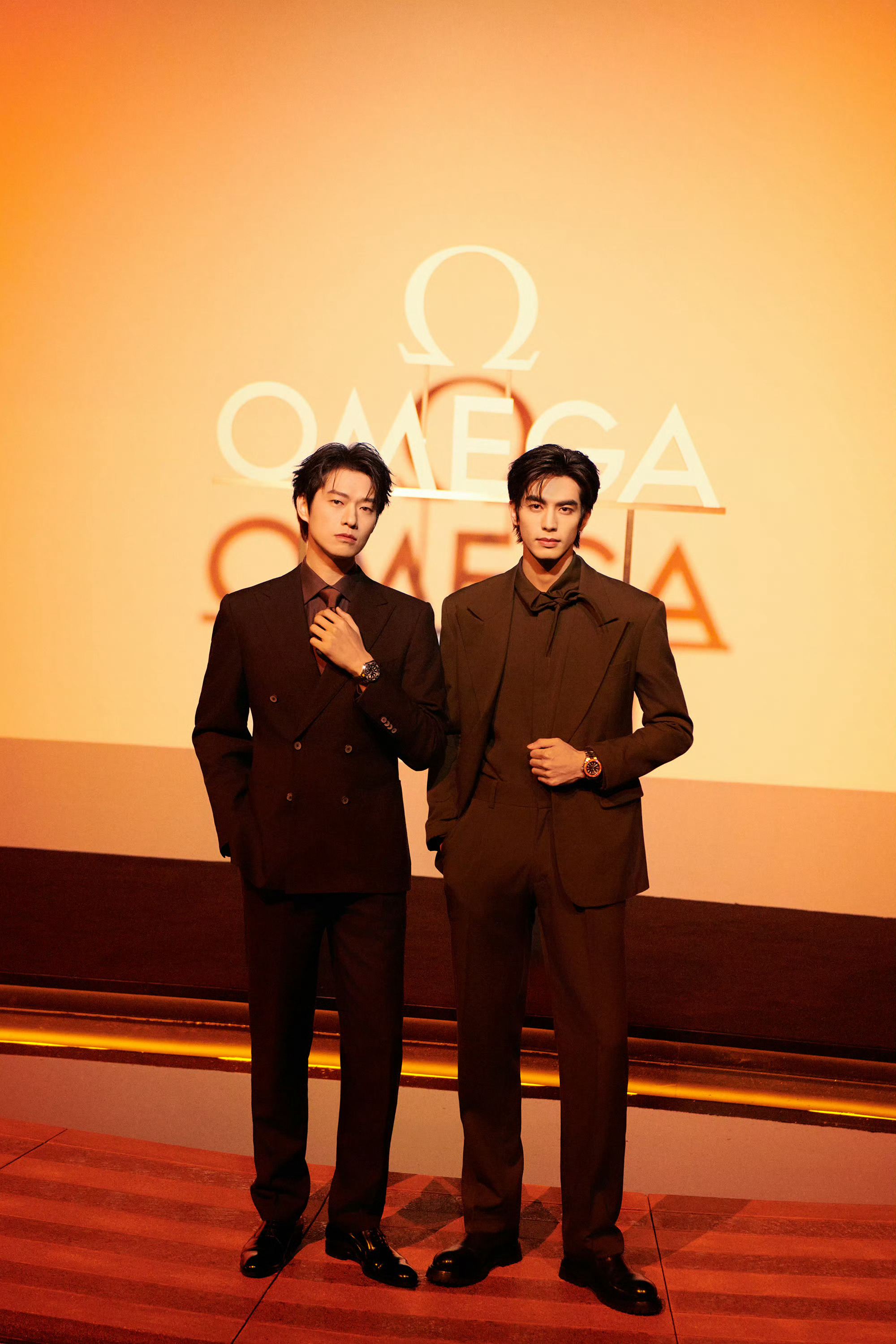 🧡🧡🧡OMEGA在重庆正式发布第四代海马系列海洋宇宙Planet Ocean系列,活动以“海洋宇宙”为主题,选址重庆呼应“两江汇流成海”的意象,从李子坝轻轨专列到各大商圈大屏都被欧米茄活力橙点亮。在重庆壹方美术馆举办的庆典活动,欧米茄名人大使魏大勋、宋威龙 两人身穿西服套装佩戴欧米茄海马系列海洋宇宙腕表登场,魏大勋演绎蓝圈款的深邃大气,宋威龙诠释橙圈款的活力自信,现场结合以几何建筑与水景为主要视觉元素,并以橙蓝光影呼应全新海洋宇宙腕表的设计与配色。