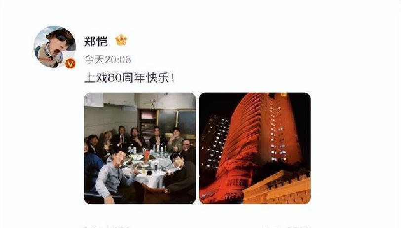 昨天晚上,郑恺在上海戏剧学院80周年庆典后,兴冲冲分享了场老同学的小聚照,本来是