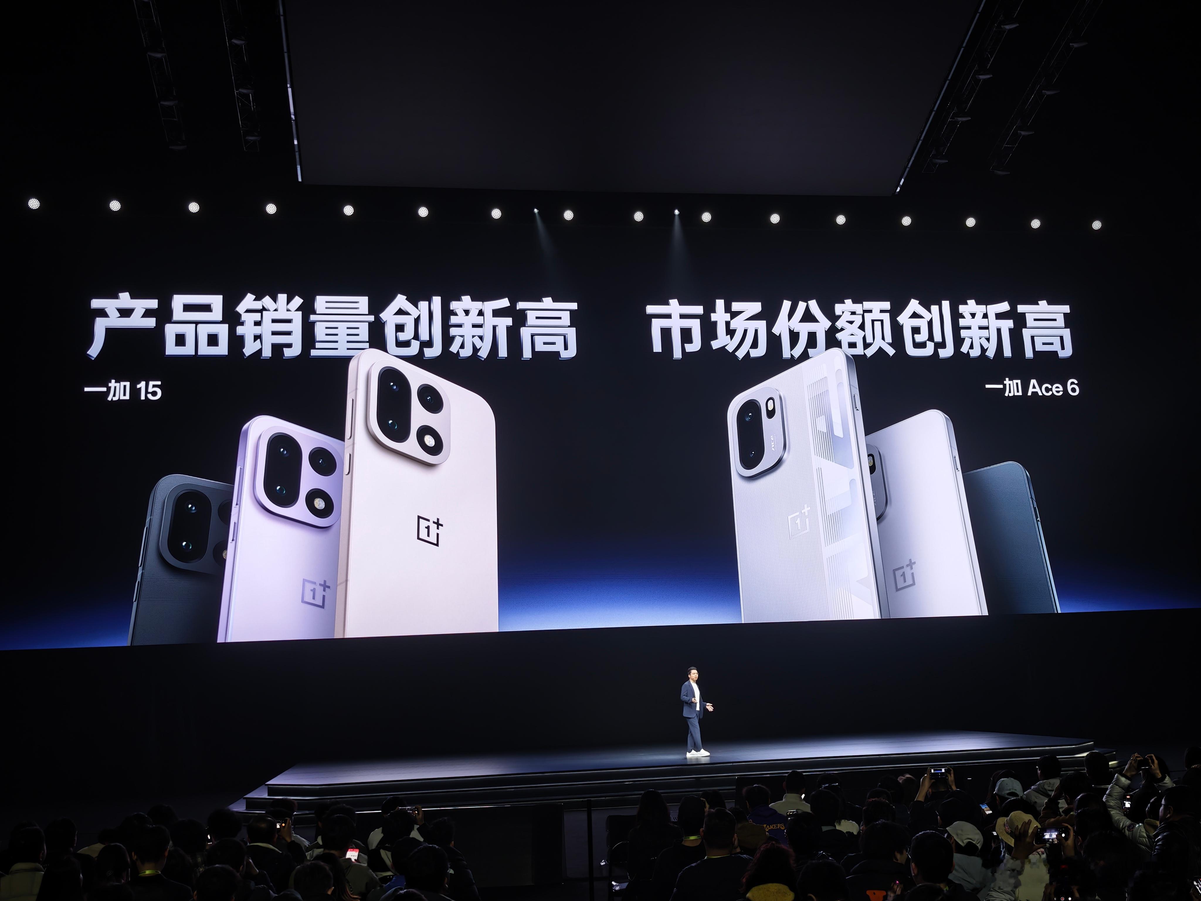行业惯例,先吹成绩:一加手机销量同比增长42.3%,是2025年销量增速行业第一。这个确实无争议。一加 15和一加 Ace 6上市后销量也非常不错,预计一加 15将成为近几年销量最高的旗舰机型。一加Ace6T一加Ace6T新品发布