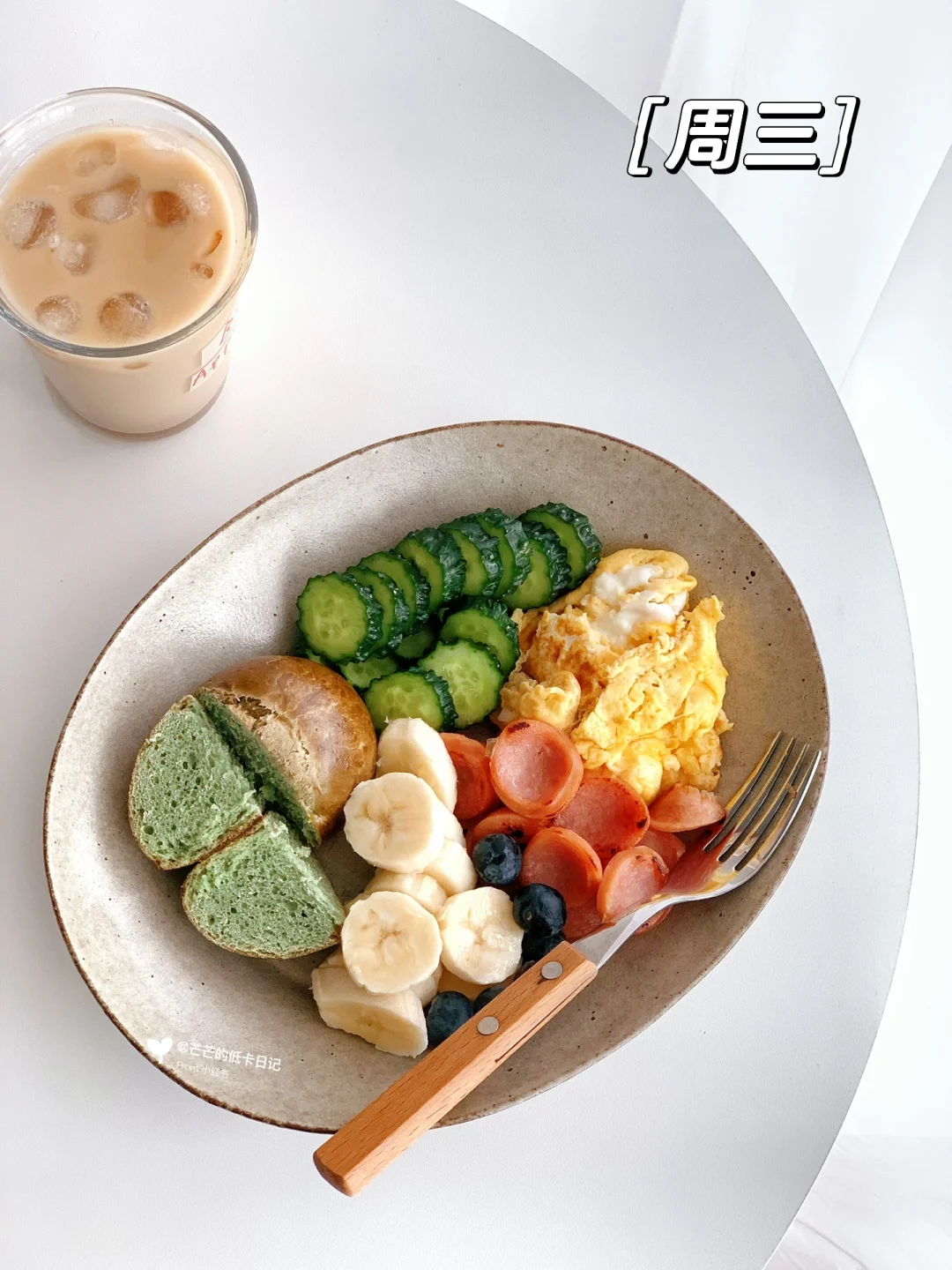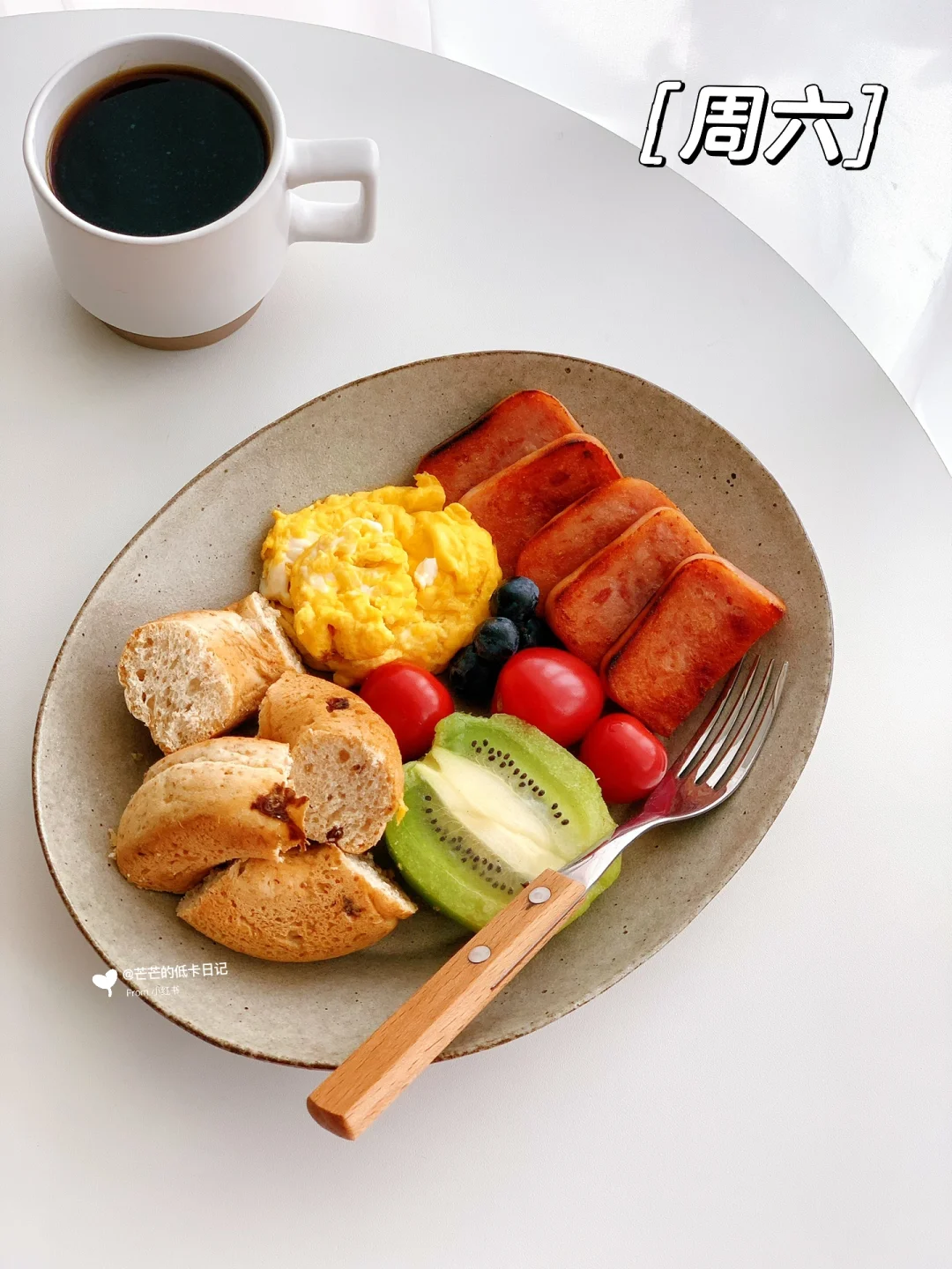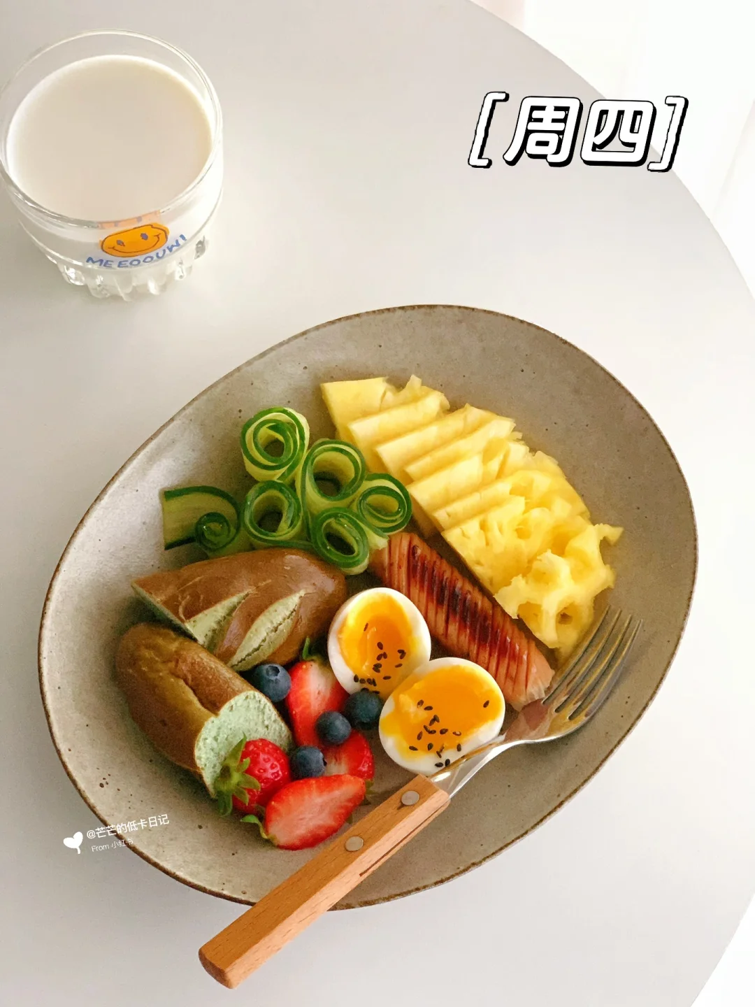 [飞吻R]hi,姐妹们,我又来分享减脂餐啦❗️进入主页🈶很多有手就会的家常减脂餐~~ ………………………………………………………………………………… 今日分享工作日简易早餐拼盘 🕐时间:5-10分钟 ⭐难度:零厨艺✌️ 不管多忙都要吃早餐呀,简单的搭配。。 ✅十分钟就搞定 ✅简单低卡 ✅营养方便 ⭐低卡主食:碱水面包,贝果,欧包,全麦面包,碱水棍 ⭐蛋白质:水煮蛋(或者牛奶滑蛋) ⭐饮品:黑咖啡,牛奶,或者一杯自制美式 ♨️搭配水果,午餐肉,膳食肠 🌈🌈不知道吃什么的可以来看一下啊‼️