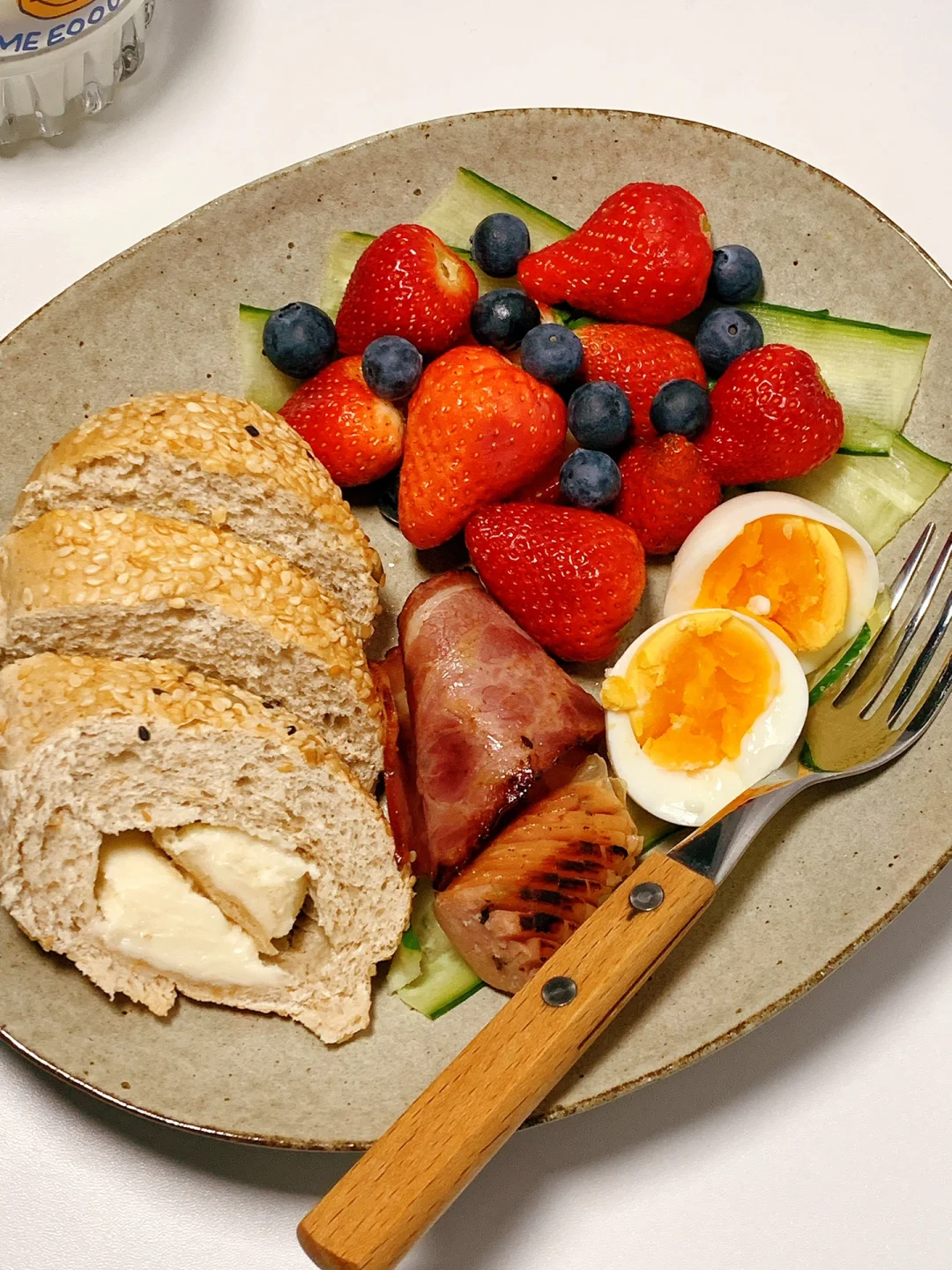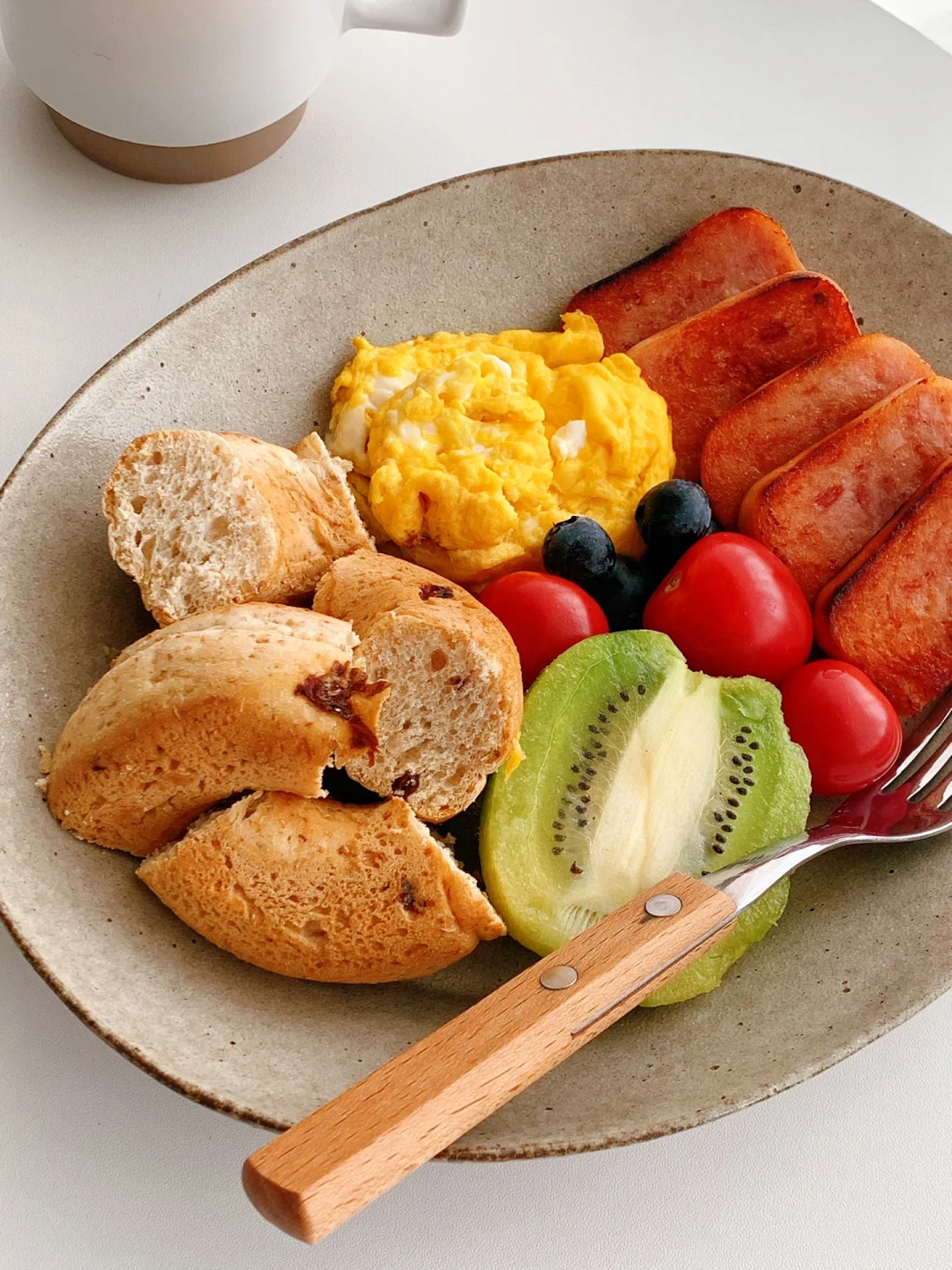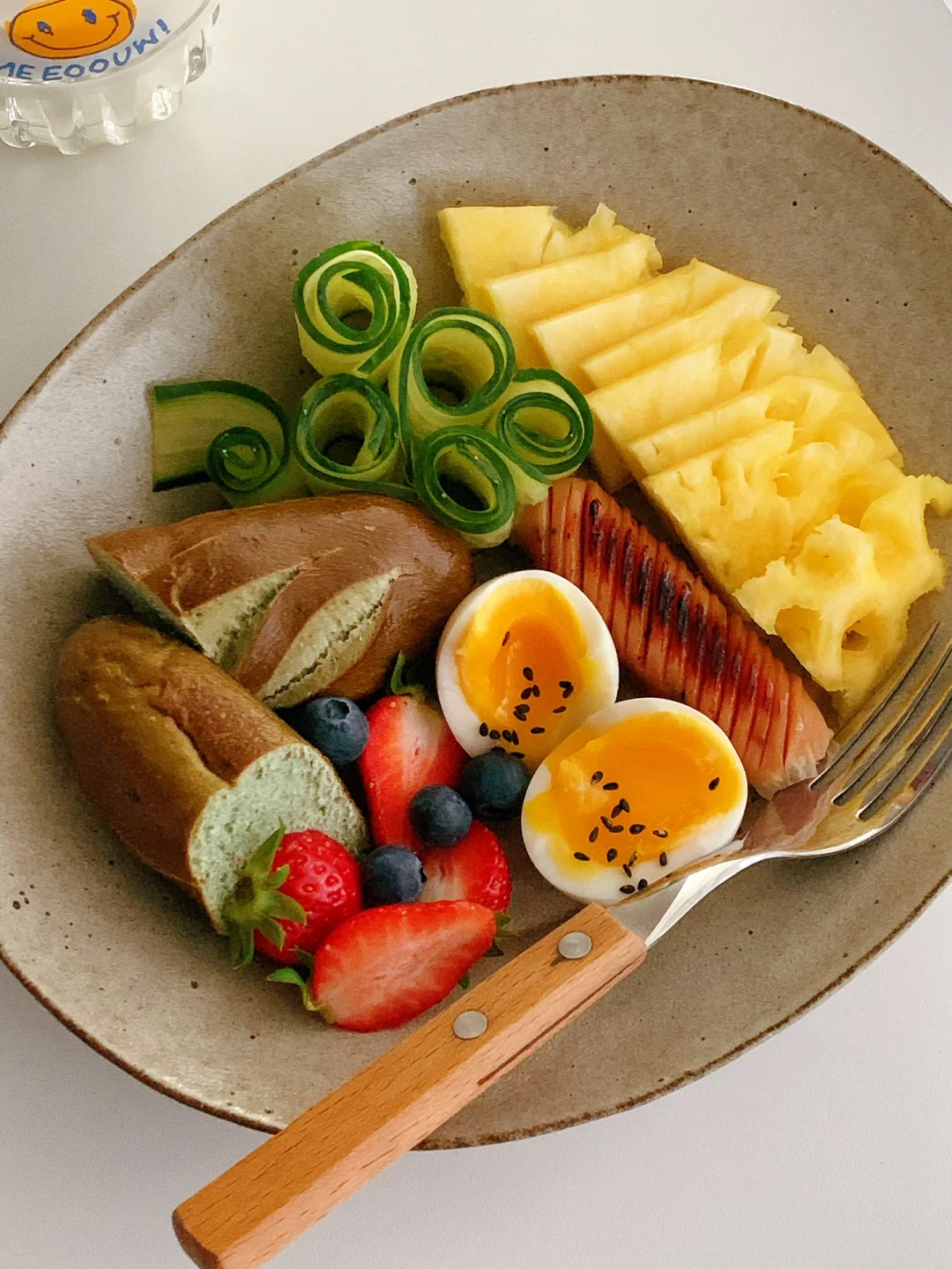 [飞吻R]hi,姐妹们,我又来分享减脂餐啦❗️进入主页🈶很多有手就会的家常减脂餐~~ ………………………………………………………………………………… 今日分享工作日简易早餐拼盘 🕐时间:5-10分钟 ⭐难度:零厨艺✌️ 不管多忙都要吃早餐呀,简单的搭配。。 ✅十分钟就搞定 ✅简单低卡 ✅营养方便 ⭐低卡主食:碱水面包,贝果,欧包,全麦面包,碱水棍 ⭐蛋白质:水煮蛋(或者牛奶滑蛋) ⭐饮品:黑咖啡,牛奶,或者一杯自制美式 ♨️搭配水果,午餐肉,膳食肠 🌈🌈不知道吃什么的可以来看一下啊‼️