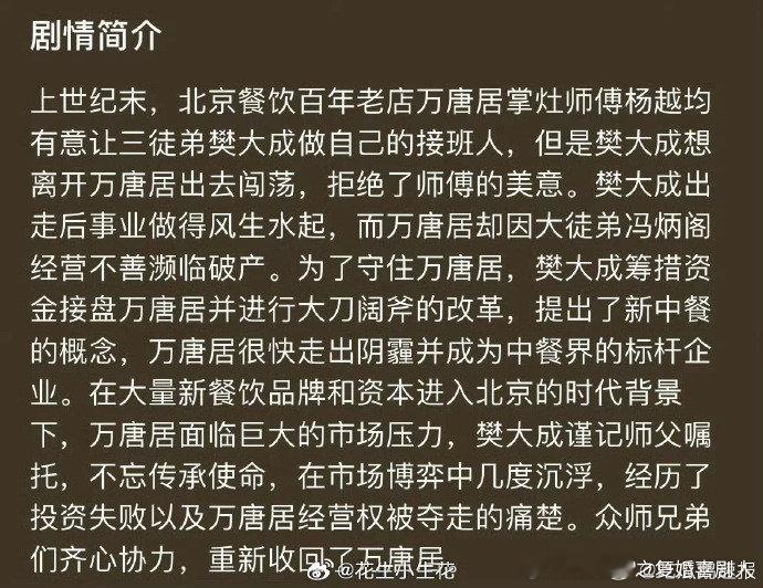收山制作班底 收山网传主演阵容 期待胡歌诠释樊大成从学徒到餐饮大佬的跌宕人生,这
