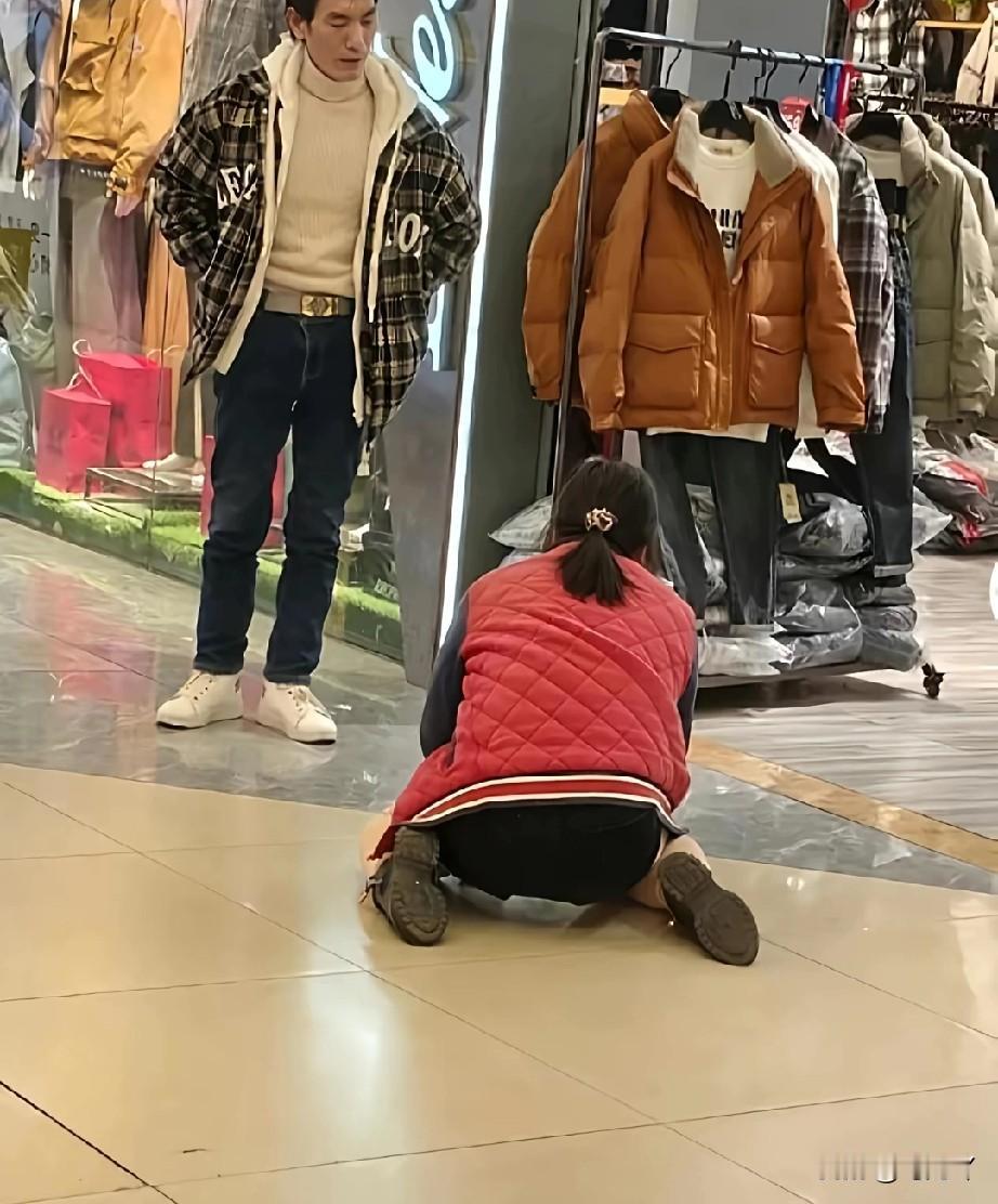 网传女子为了买一件羽绒服,在地下商场里当众给丈夫下跪? 12月2号,有网友拍摄