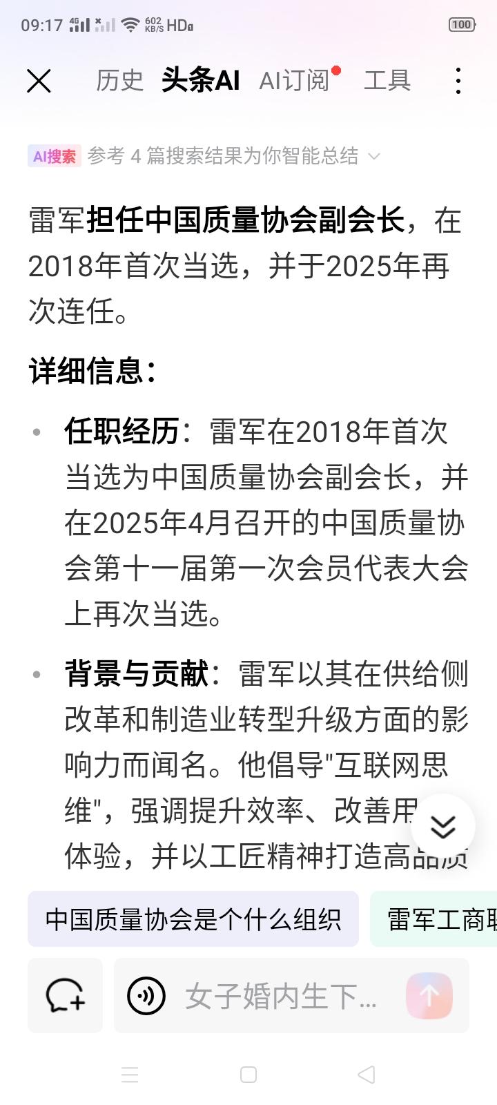 小米汽车连续两年荣获中国质量协会“中国新能源汽车用户满意度调查第一名”的成绩? 2025年4月,雷军再次当选中国质量协会副会长。 既是裁判,又是选手,这个用户满意度第一名是怎么来的?