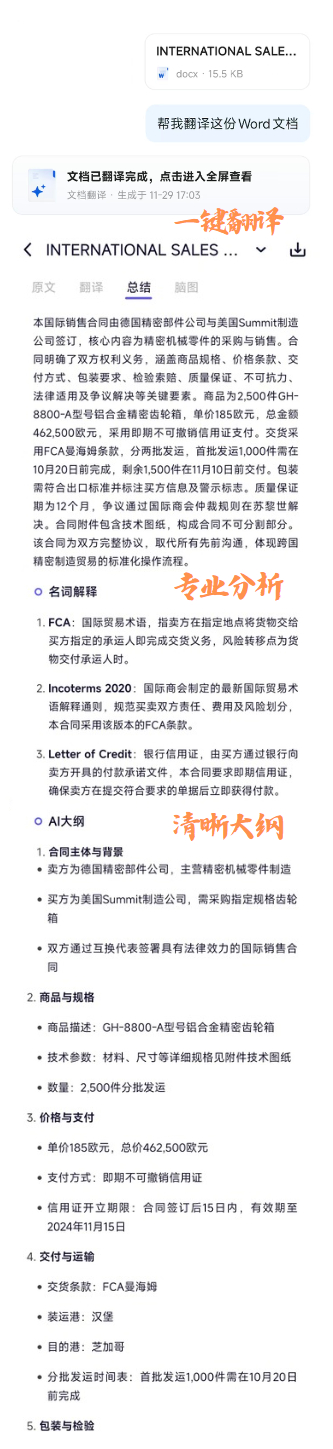 听说千问把office装进对话框了?我反手就把其他冗余软件全卸载了,从此告别在十几个应用之间反复横跳的日子!说真的,更新后的千问功能简直无敌,根据需求直接创作输出、PDF/Word/Excel格式互转、内置5亿级资料查找,办公刚需直接拉满。更绝的是它是真的方便啊,以前处理外文合同等工作,还得单独下载专门的软件工具,要么付费要么全是广告,切换来切换去超麻烦。现在用千问升级后的功能,想写啥直接对话里给指令,不仅能根据指令给出文档模版,还能转化成你需要的格式。真是打工人的提效高手!
