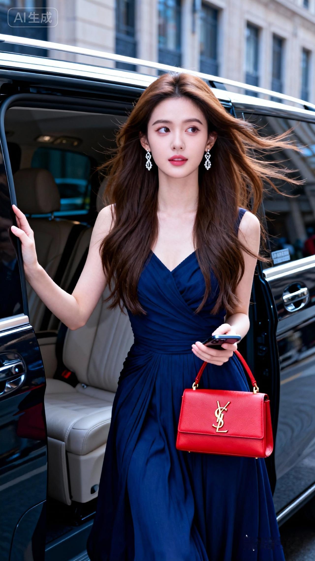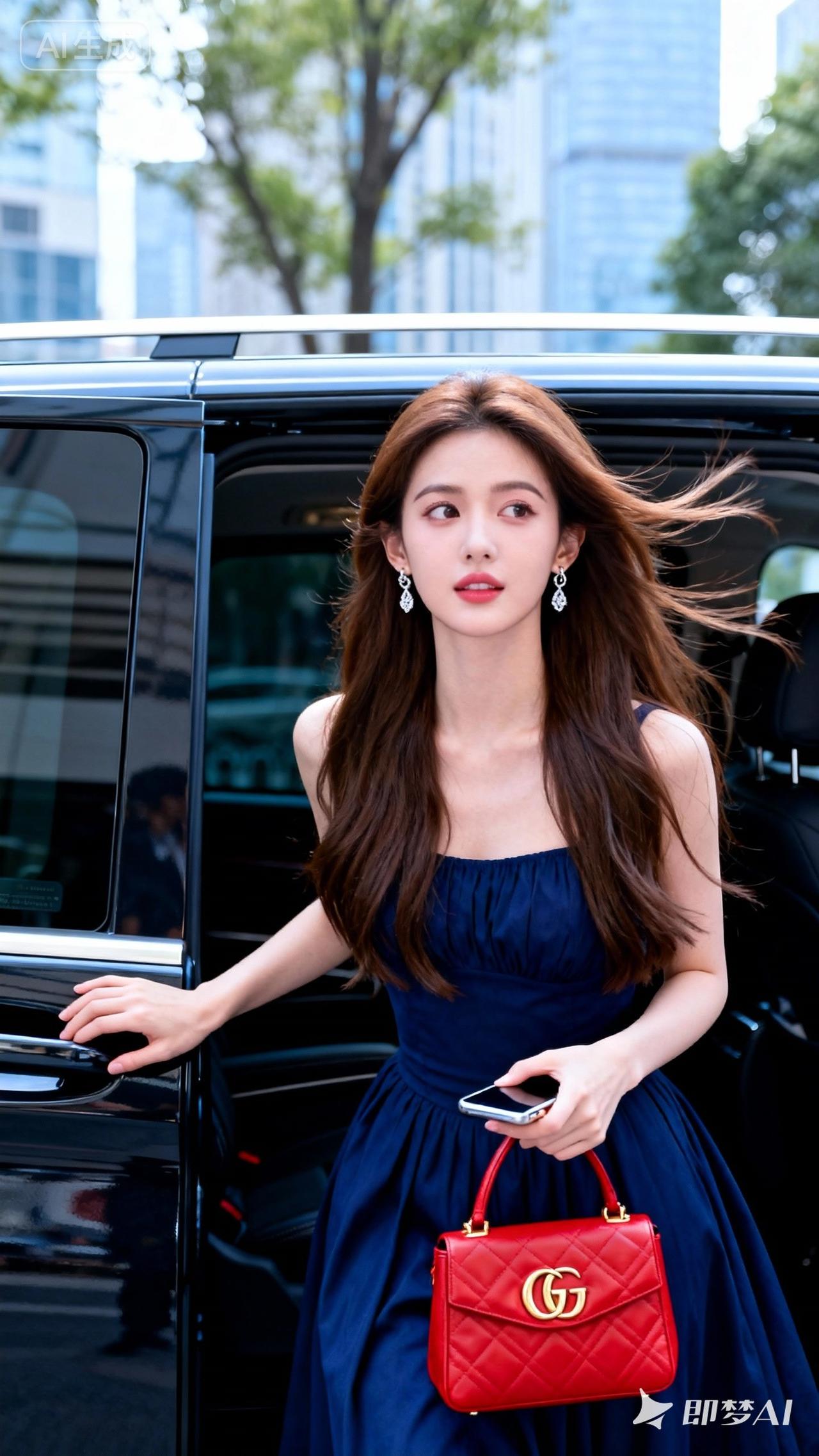 车中美人,手执香囊。