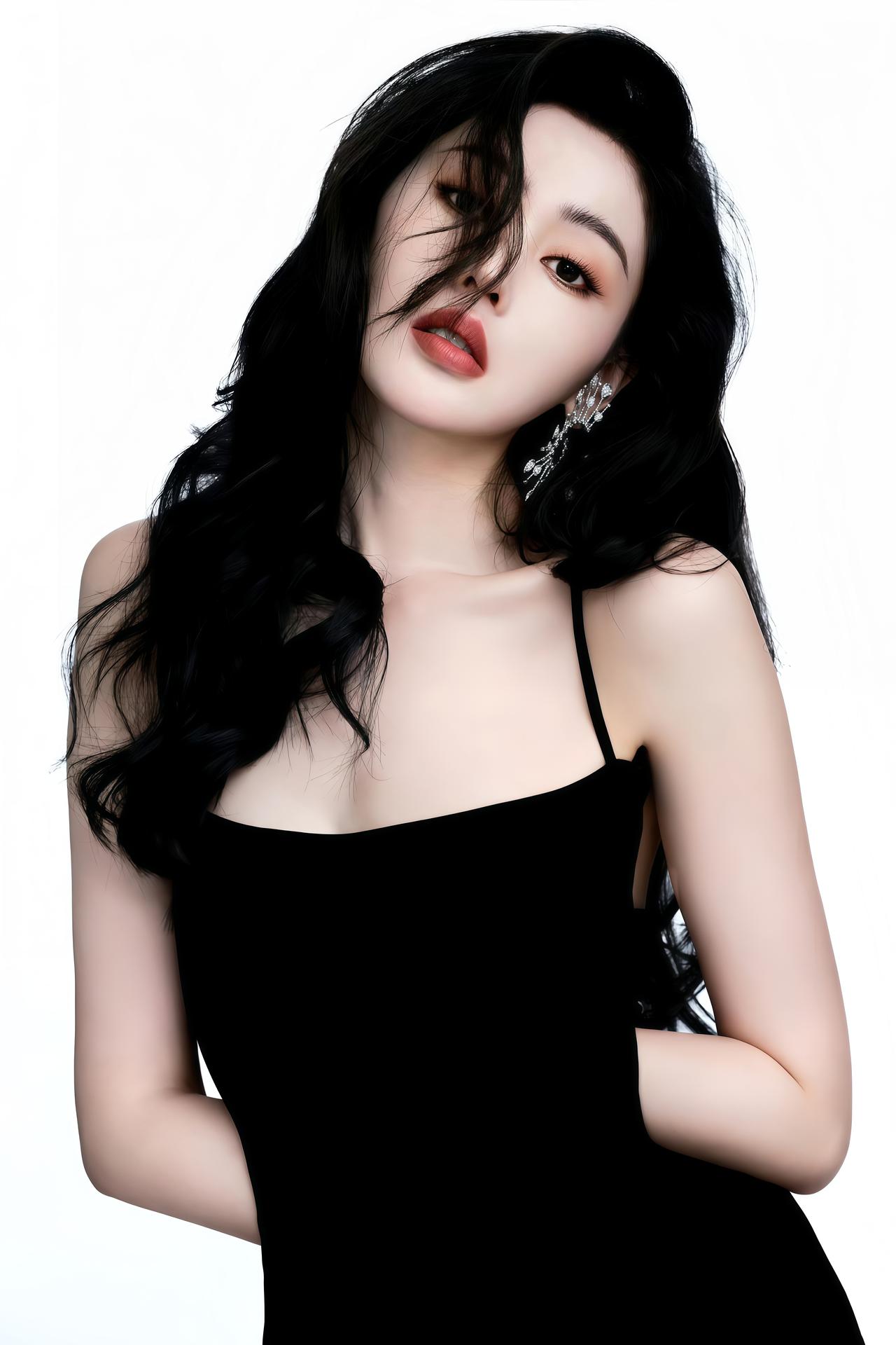 张天爱,黑发红唇,优雅气质,黑白搭配,时尚迷人。张天爱 高级感写真推荐 黑发红唇
