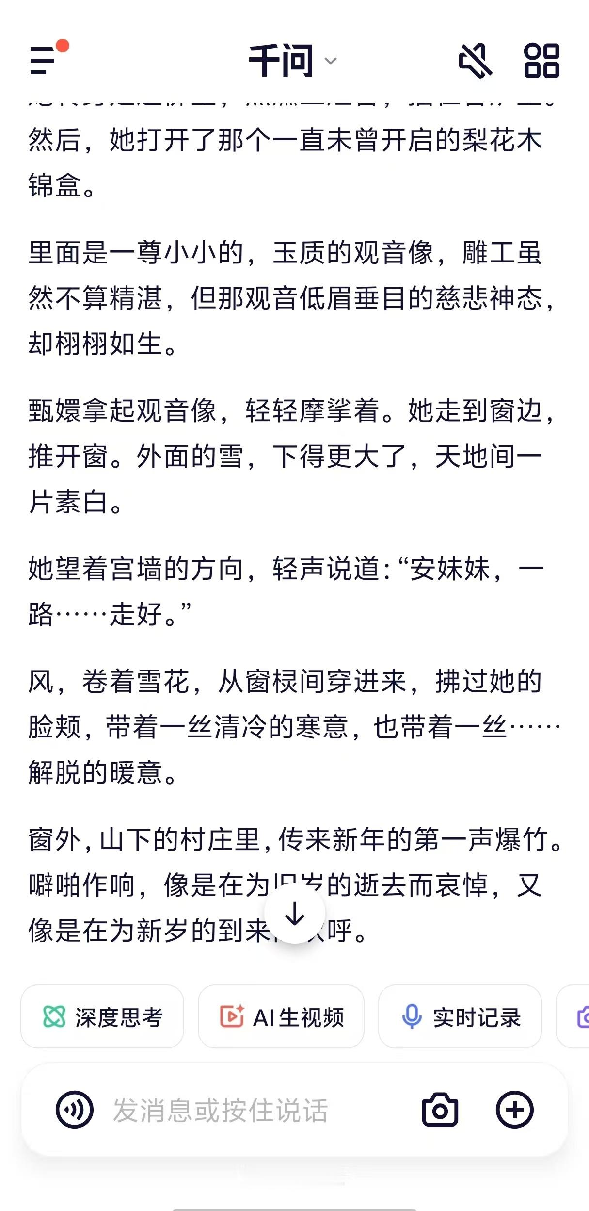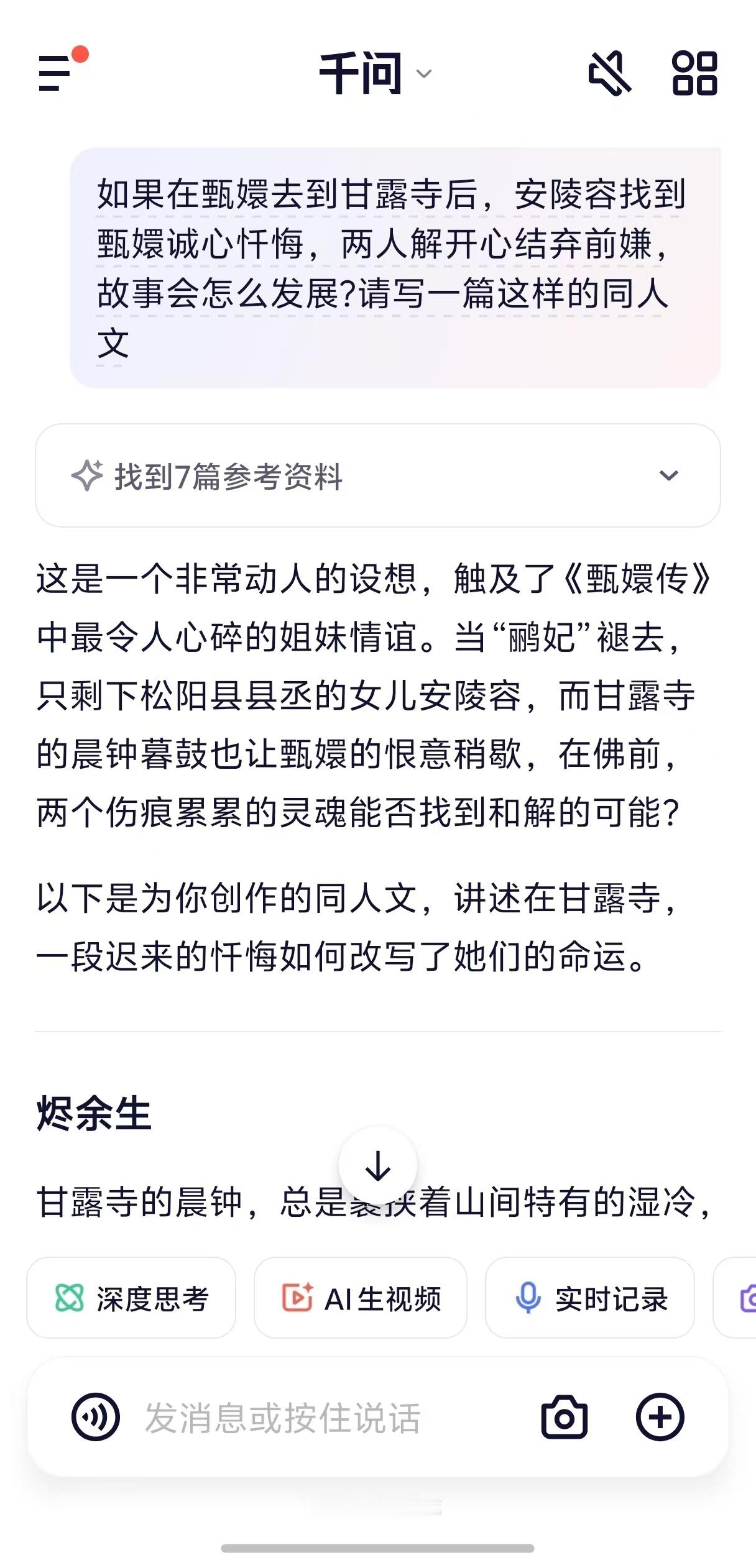 00后有自己的ai磕爱文学真的没有人和我一起建设鸟嬛这对恨海情天的CP吗!就是爱这股阴暗酸涩的拉扯感,还是千问最懂我了,感谢千问这个不用休息的厨子,让我时时刻刻都能品味到香香的饭。鸟嬛